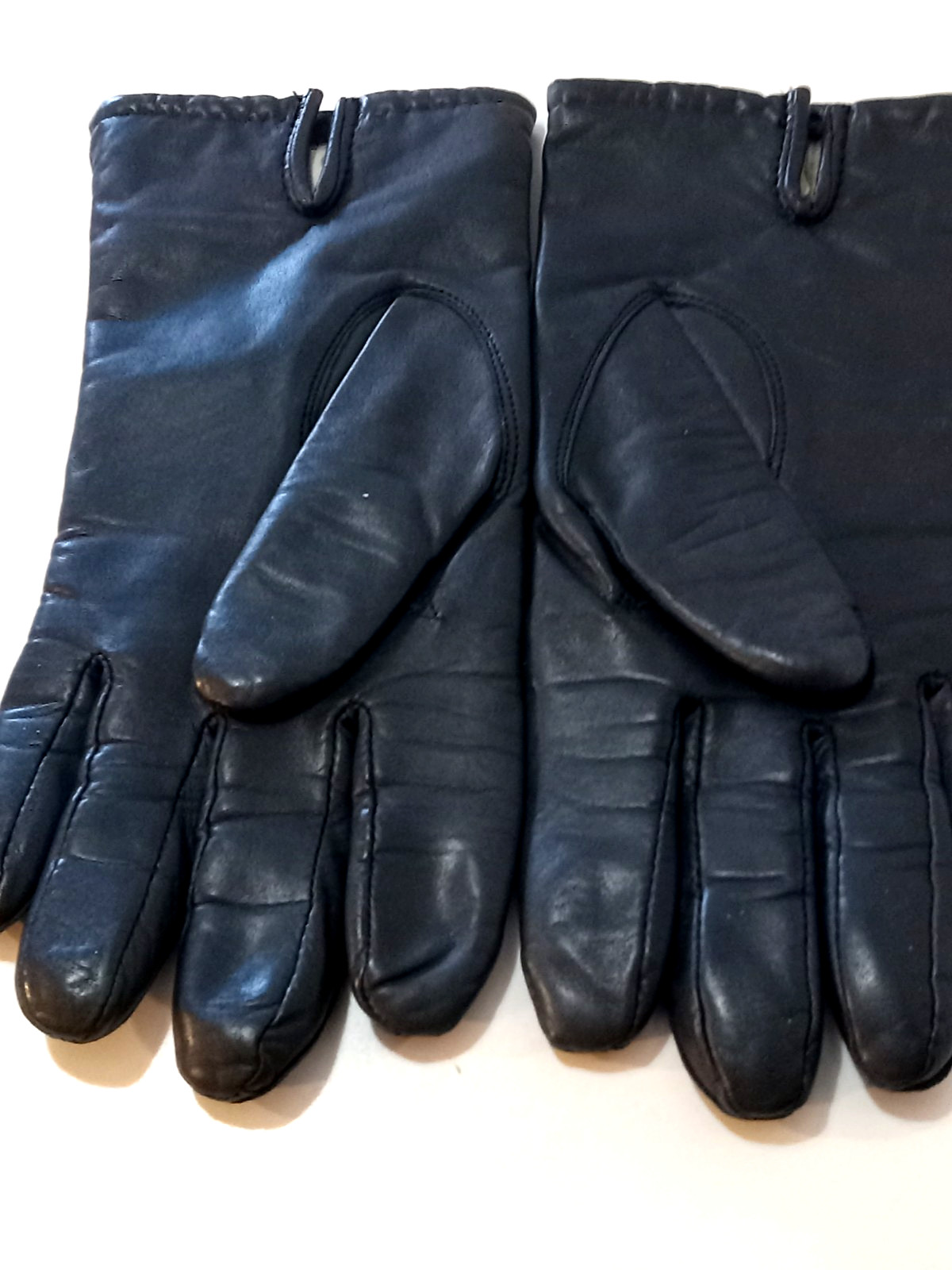 как выглядит Vtg Ladies Sz. Med. Charisma Navy Leather Lined Gloves-Decorative Top Stitching фото