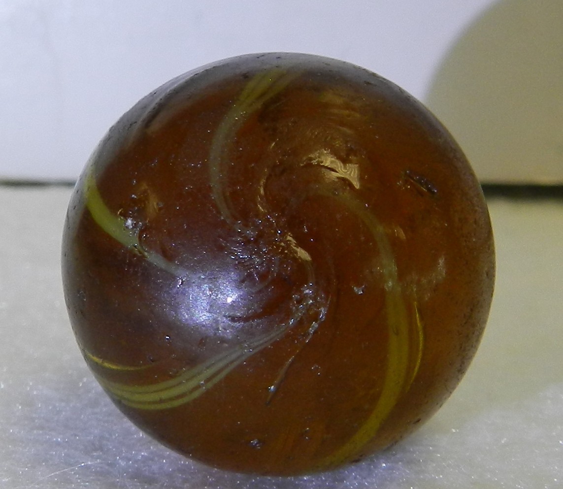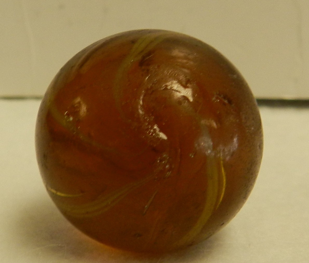 как выглядит 20301m Large .91 In Vintage German Handmade Amber Glass Coreless Swirl Marble фото