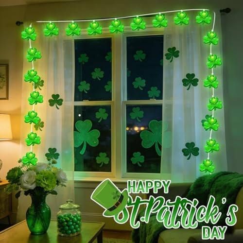 20 LED Clear Green Shamrock String Lights, 12FT St Patricks 12Ft 20LED-Shamrock