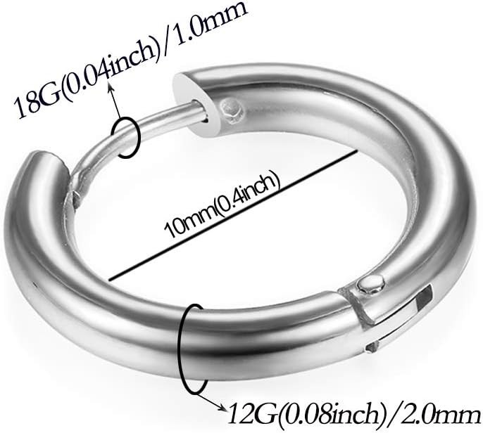316L Surgical Stainless Steel Huggie Hoop Earrings 6mm 8mm 10mm 11mm 12mm 14m...