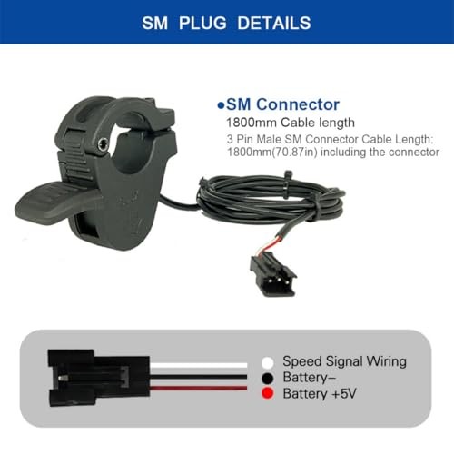 Ebike Thumb Throttle, 12V 24V 36V 48V 60V 72V 3 Pin SM Plug Ebike Throttle for