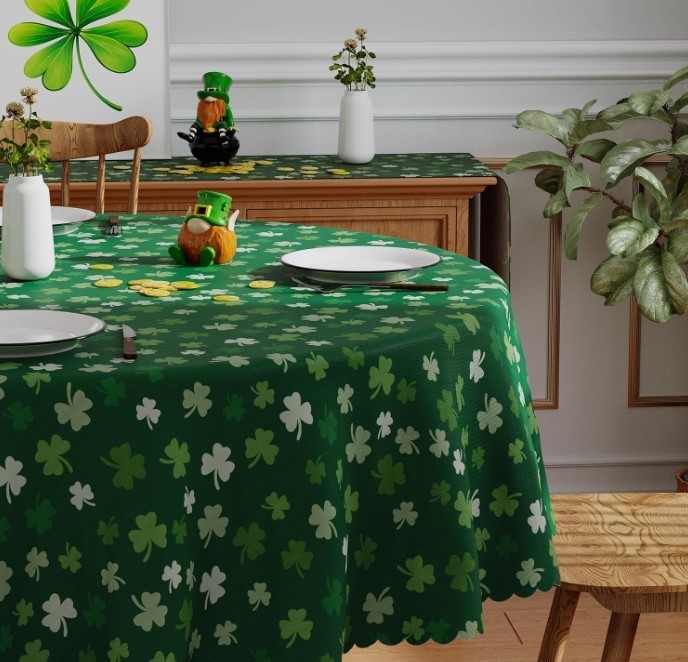 St Patricks Day round Tablecloth 70X70 Inch, Washable Green Shamrock Lucky St Pa