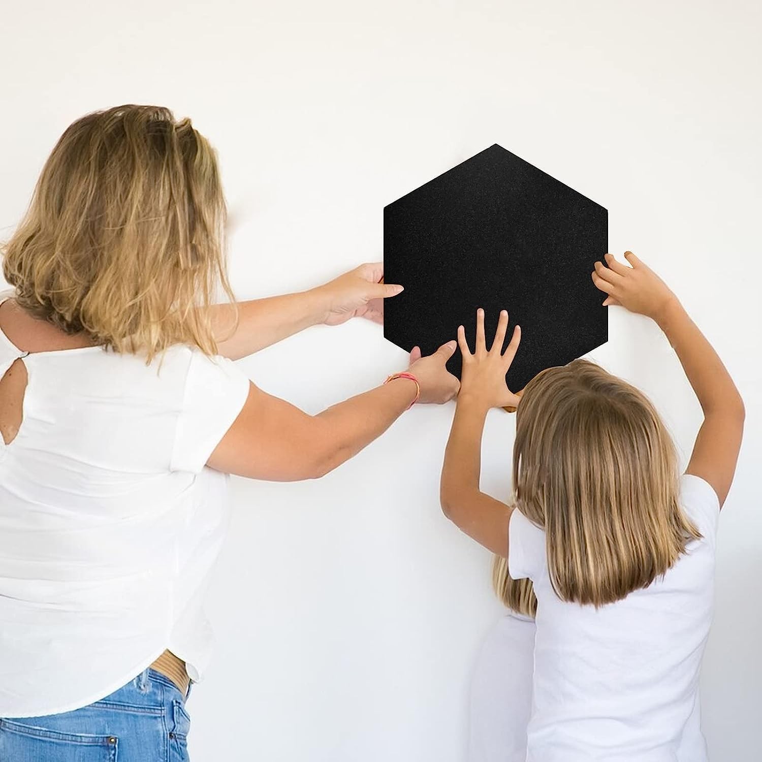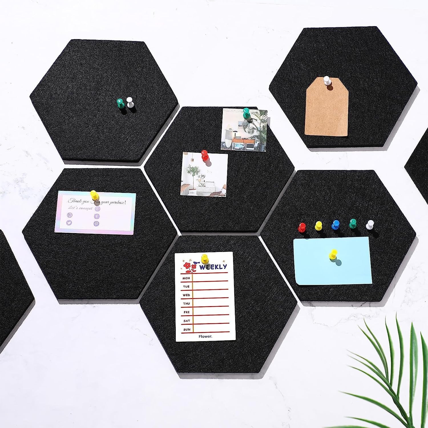 6 PCS Black Hexagon Felt Wall Tiles Self Adhesive Cork Board Memo Notice Pins