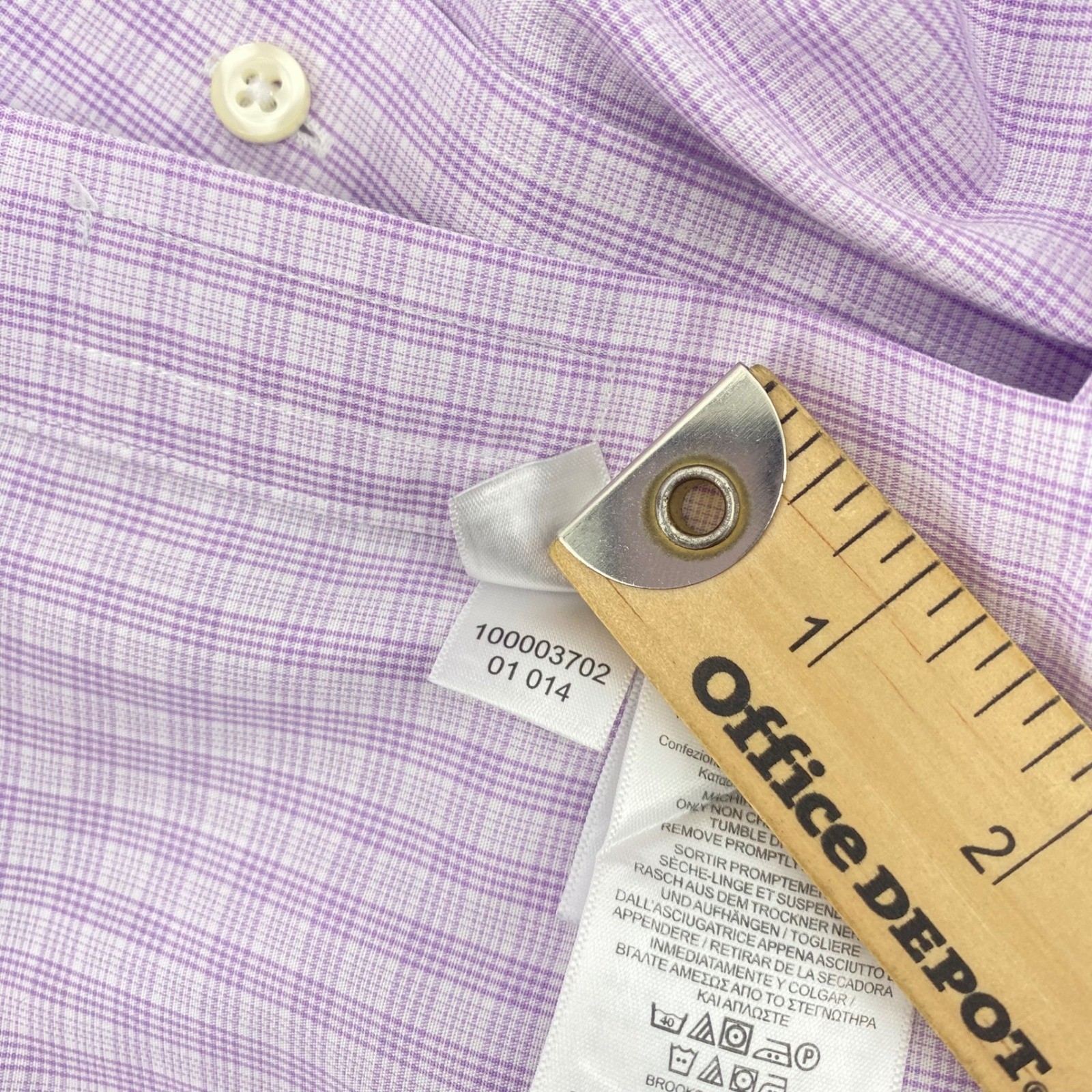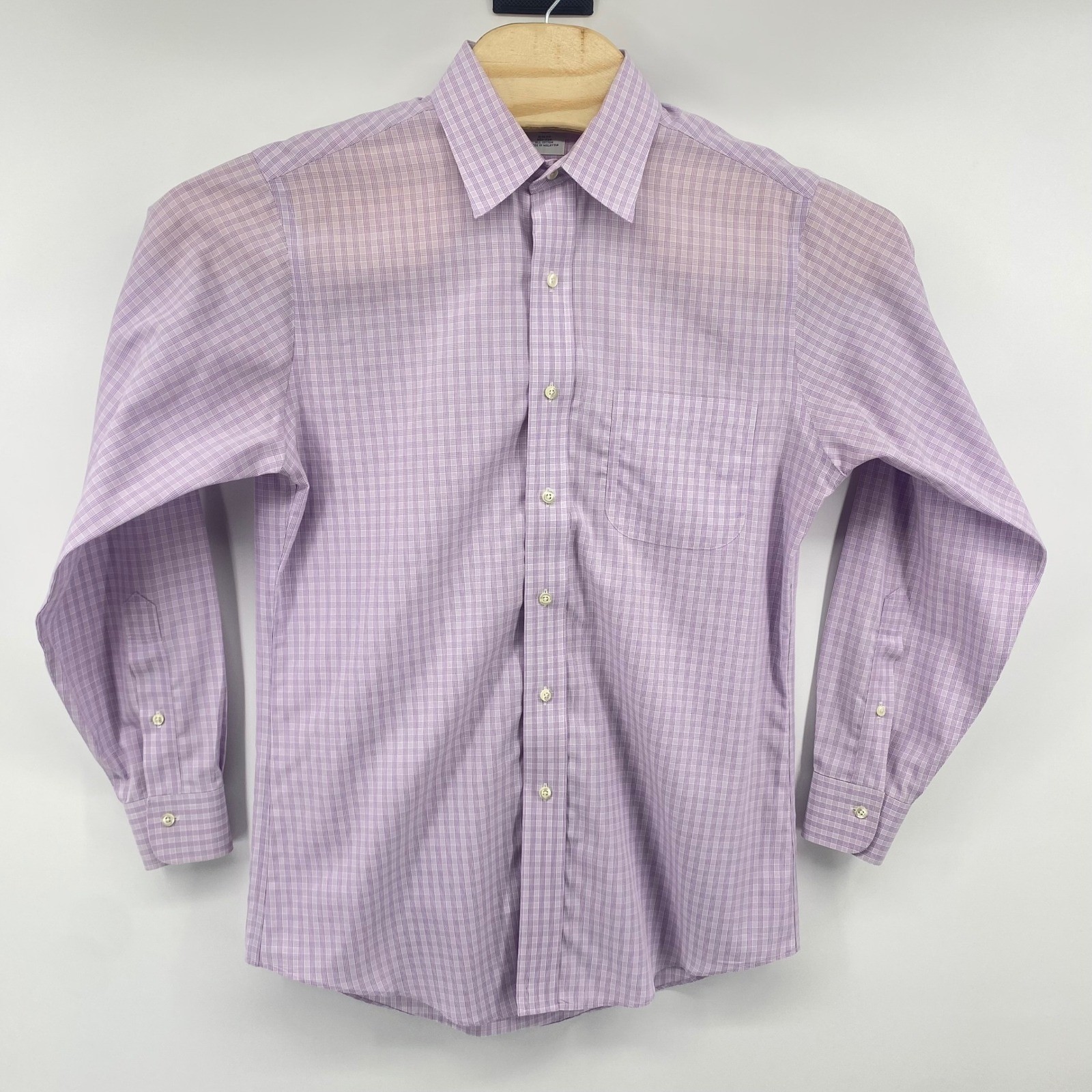 как выглядит Brooks Brothers 346 Dress Shirt Mens 15 32/3 Purple Check Slim Fit Non-Iron фото