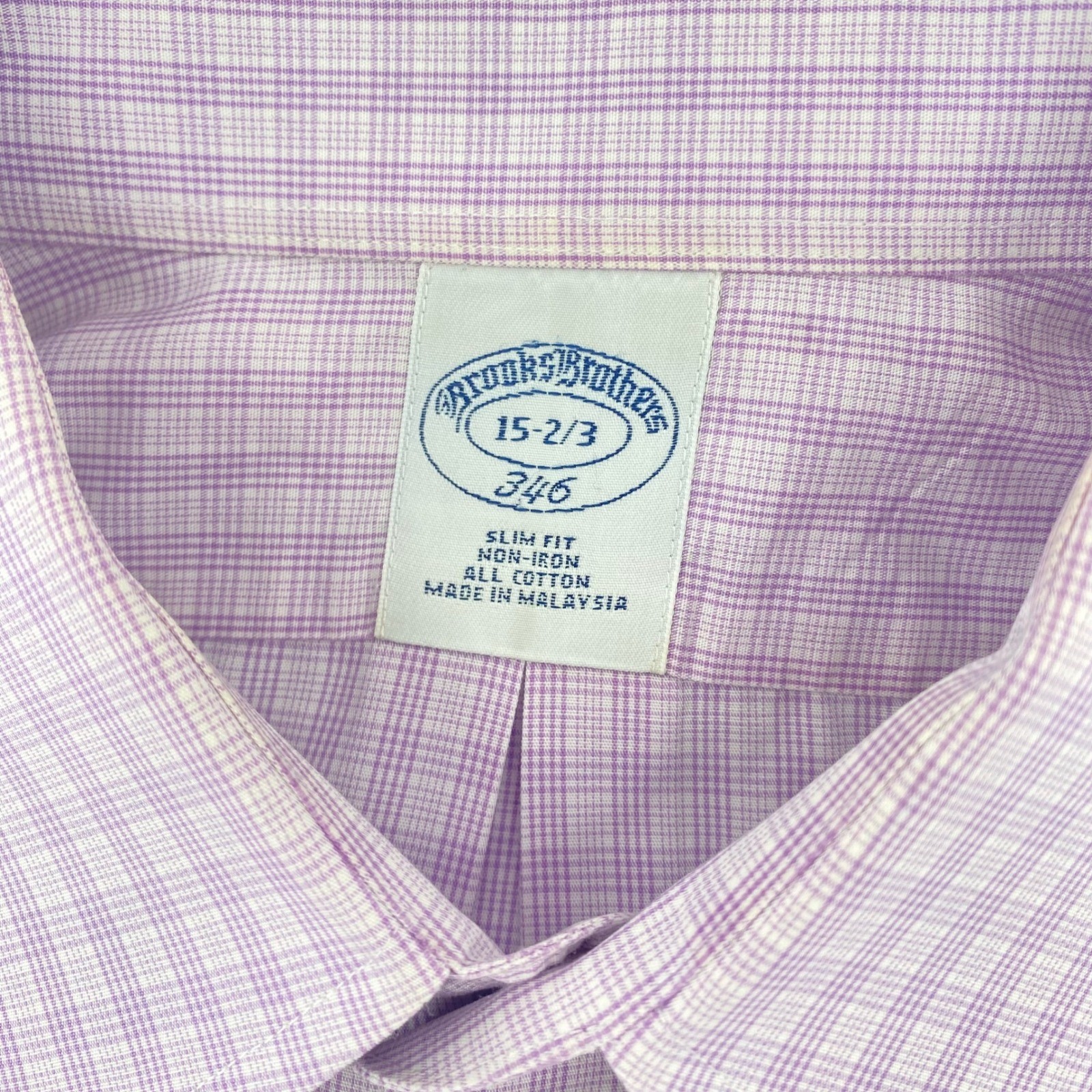 Brooks Brothers 346 Dress Shirt Mens 15 32/3 Purple Check Slim Fit Non-Iron