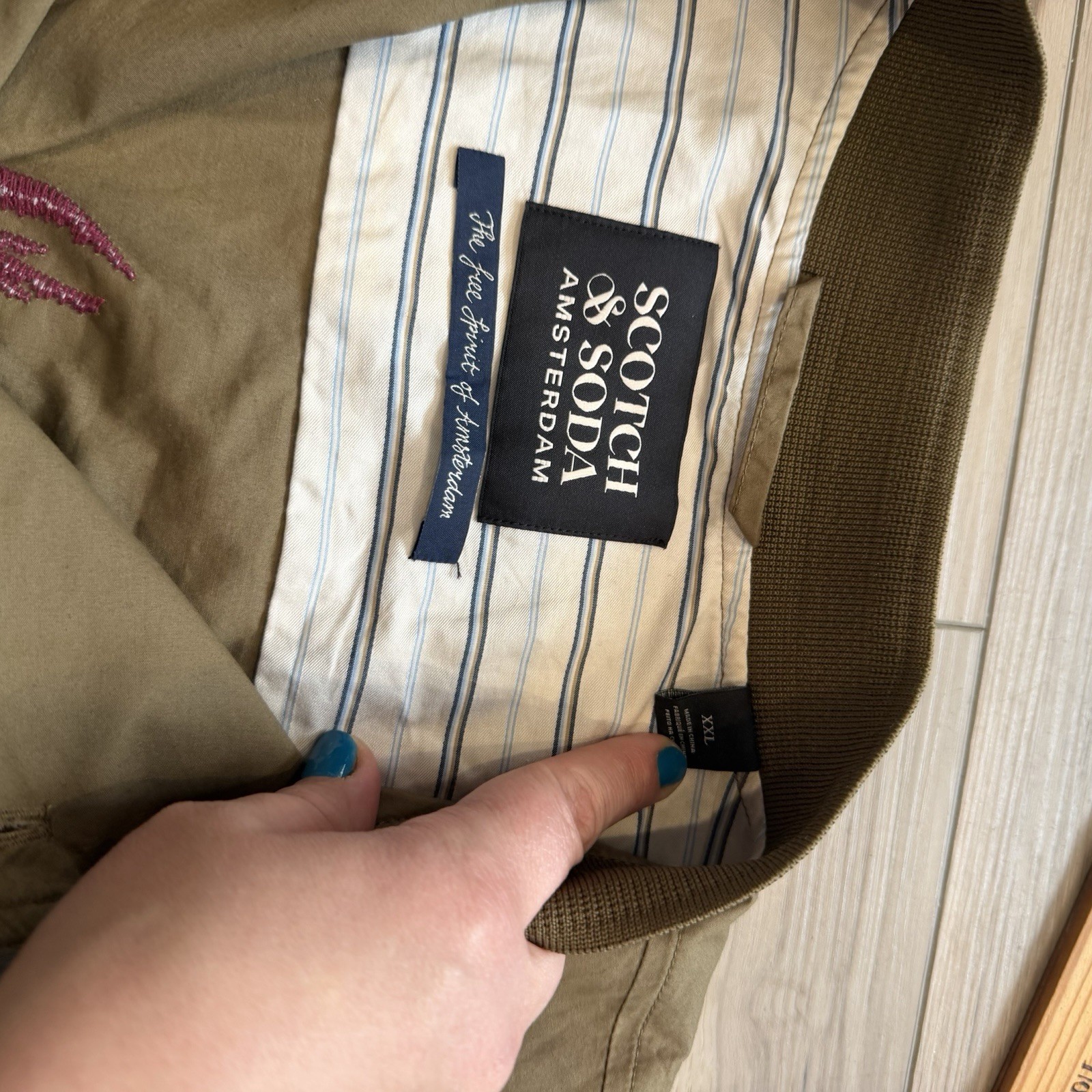 как выглядит Scotch Soda Cotton Bomber Embroidered Floral Green Sz XXL Button Lightweight фото