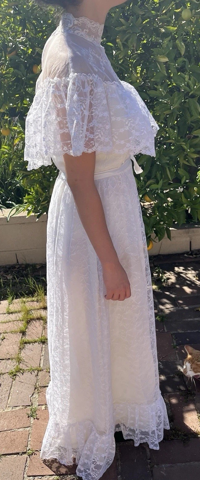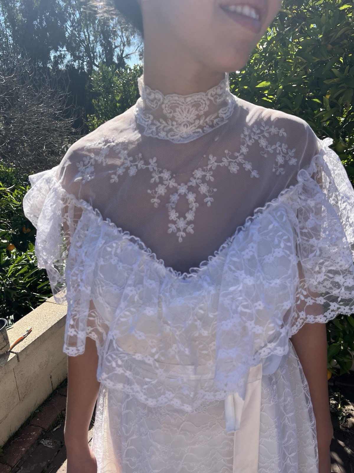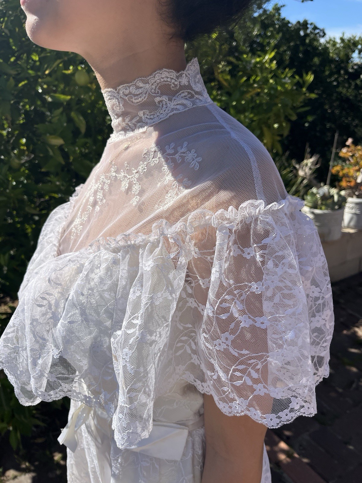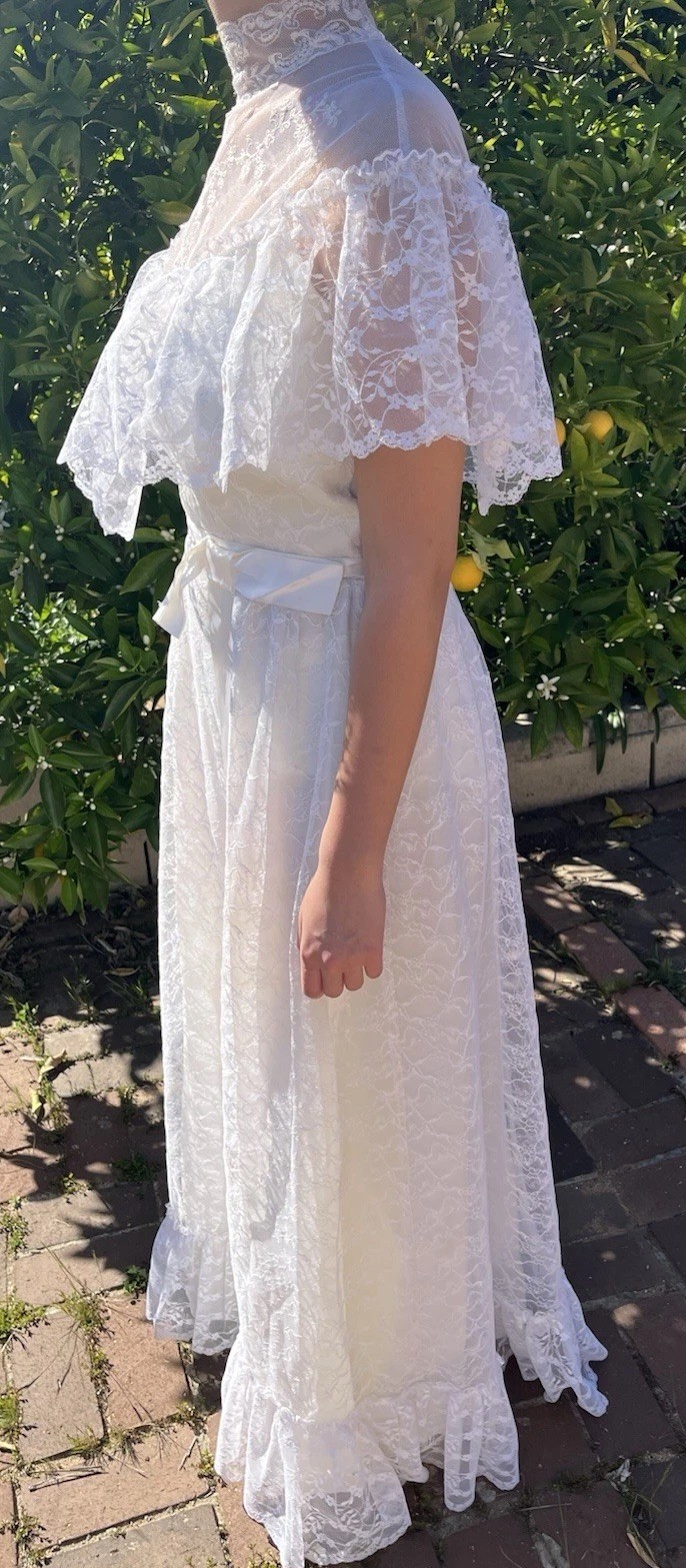 Vintage High Neck Lace Boho Edwardian Wedding Dress Prairie Romantic Small
