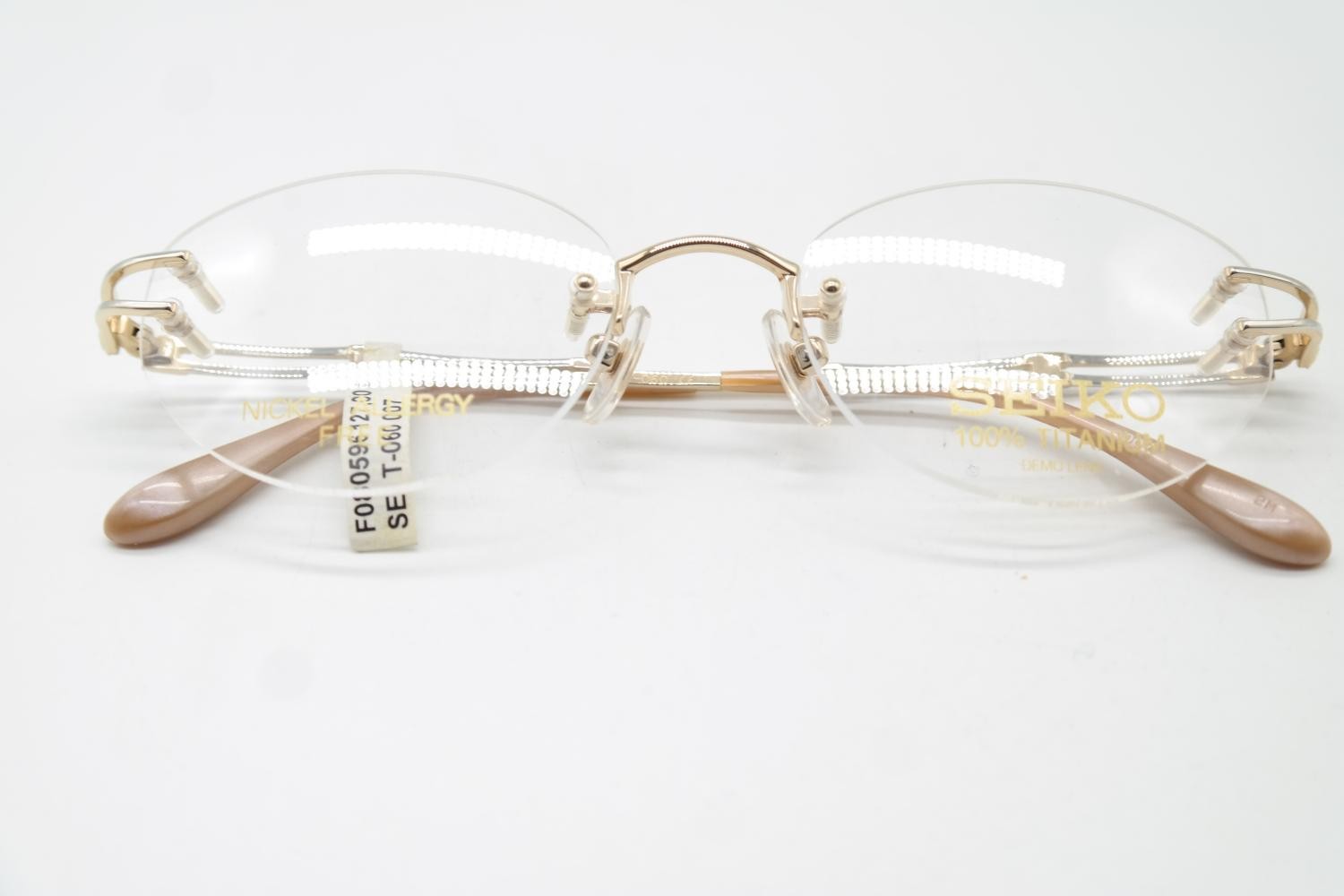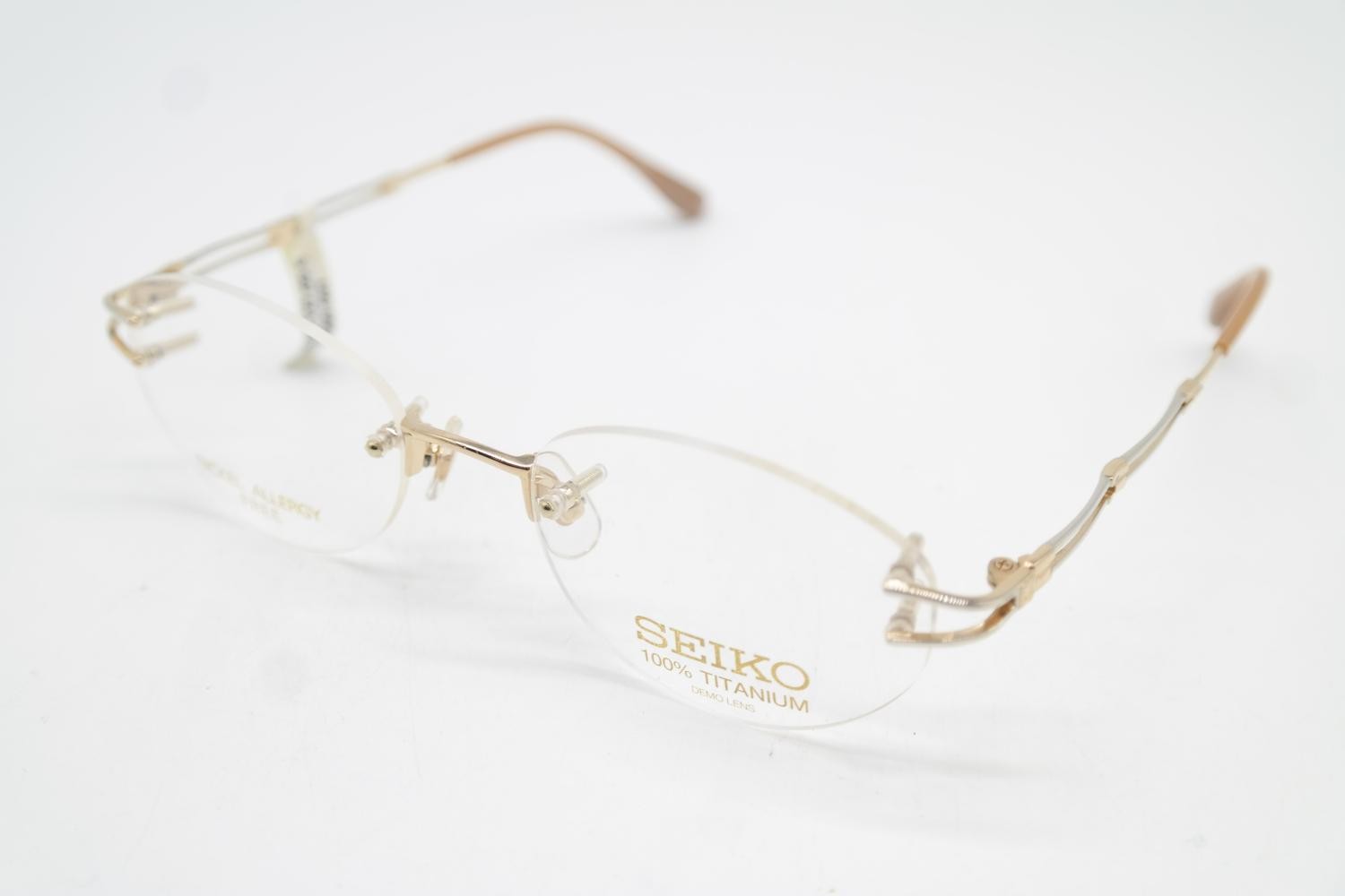 Vintage Glasses SEIKO T-060 TITANIUM Silver Gold Rimless Glasses Frame