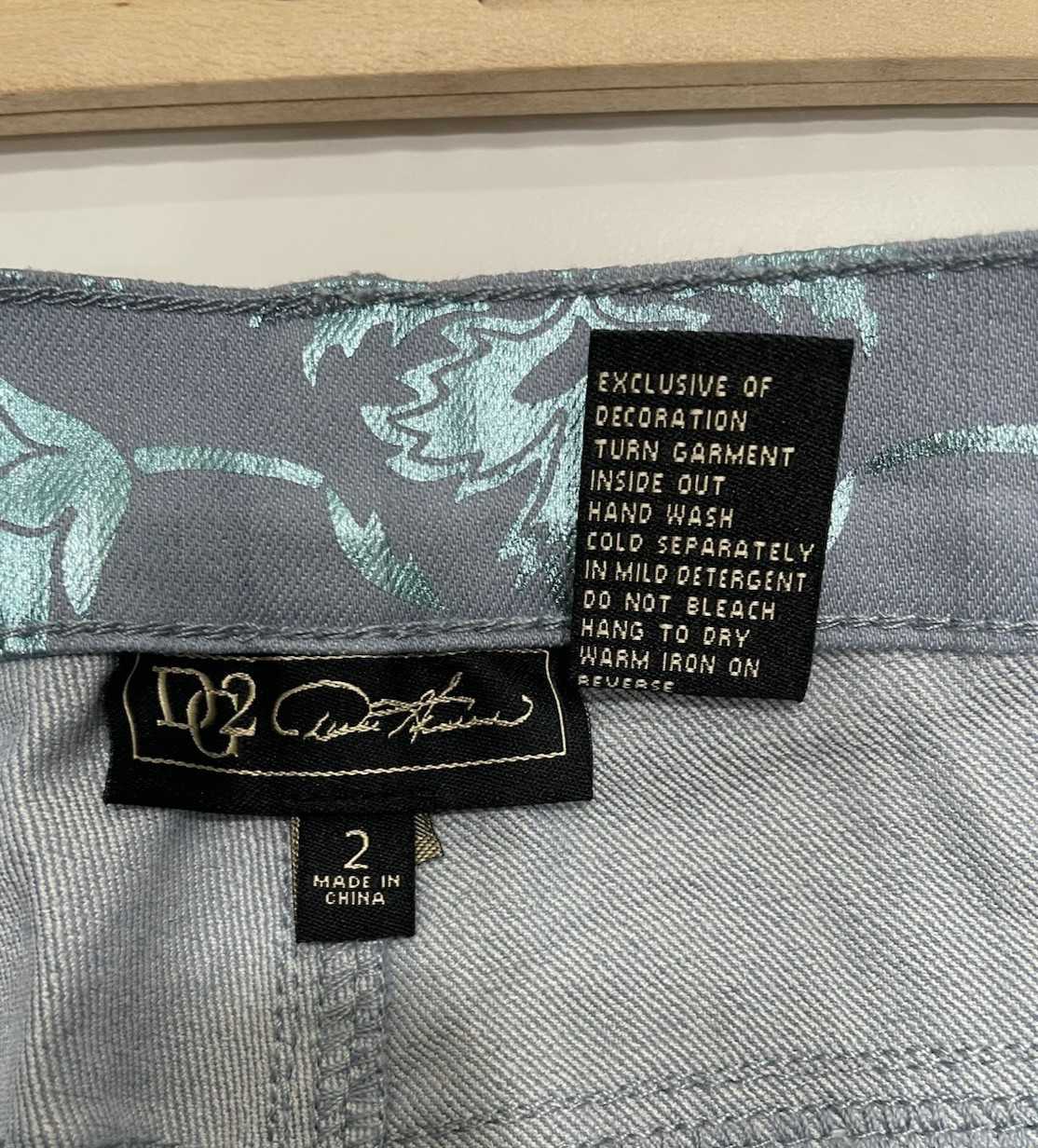 DG2 Diane Gilman Womens 2 Blue Jeans Metallic Blue Floral Print Stretch