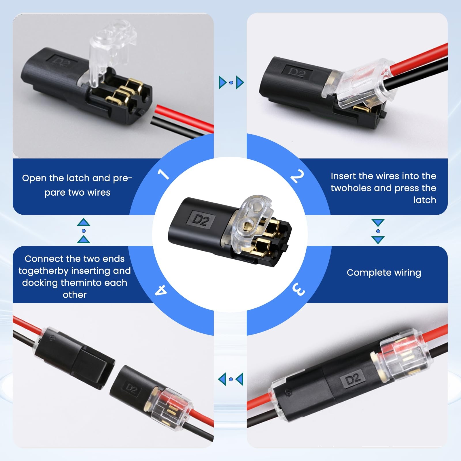 Double-Wire Plug-In Connector 2 Pin Low Voltage Wire Connectors,Low Voltage Wire