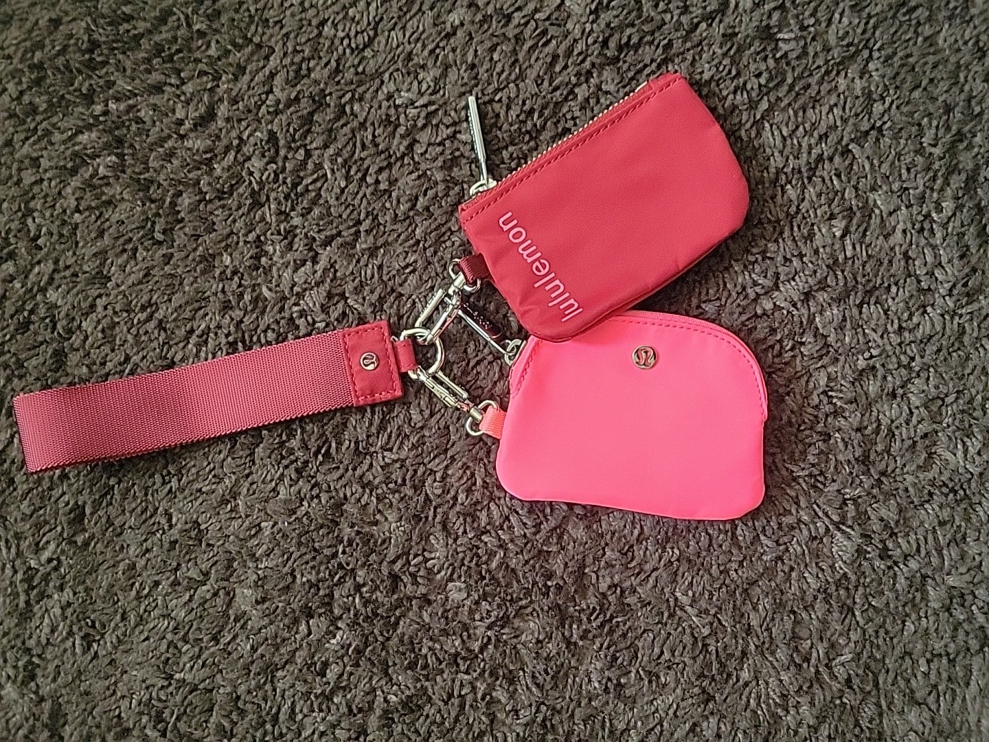 LULULEMON Women s BURGUNDY and WHITE 2 Dual Pouchs With SILVER Wristlets