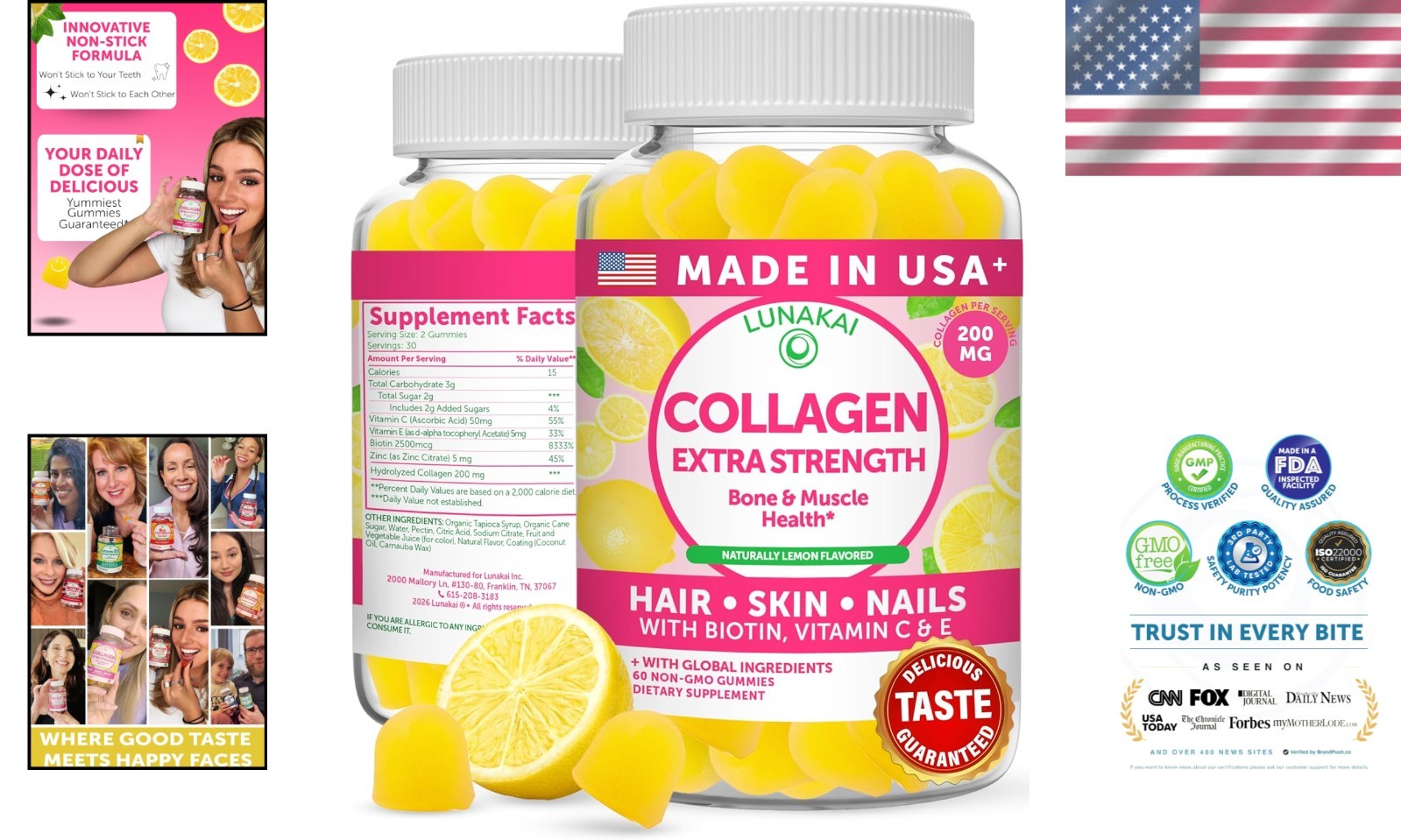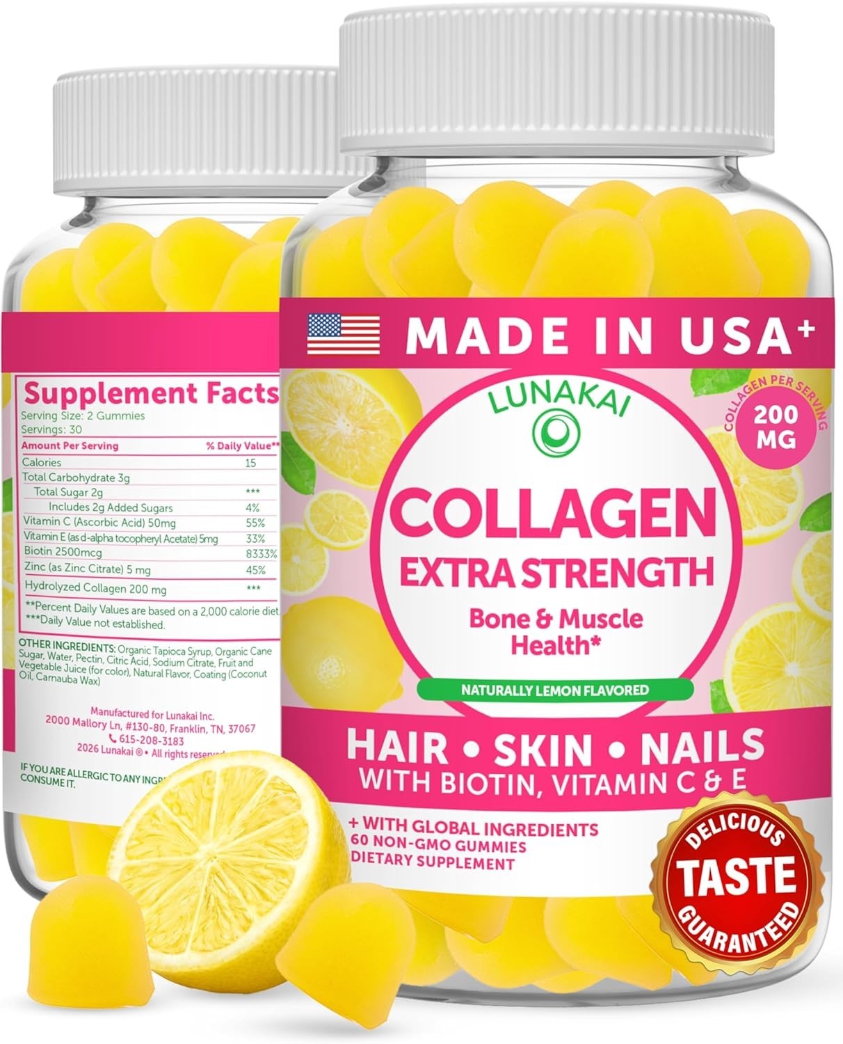 Ingredients: Collagen, Biotin, Zinc, Vitamin C, Vitamin E