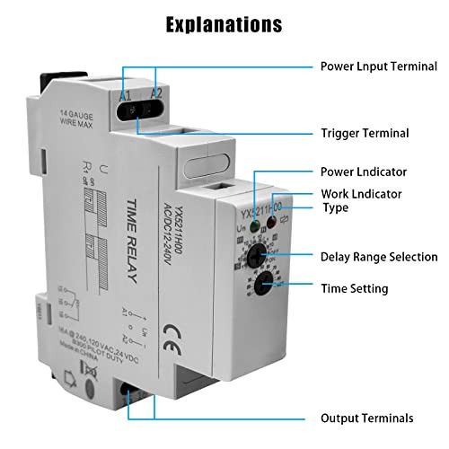 Delay Timer Switch, AC/DC 12V 240V Mini Time Relay Din Rail Power Off Delay