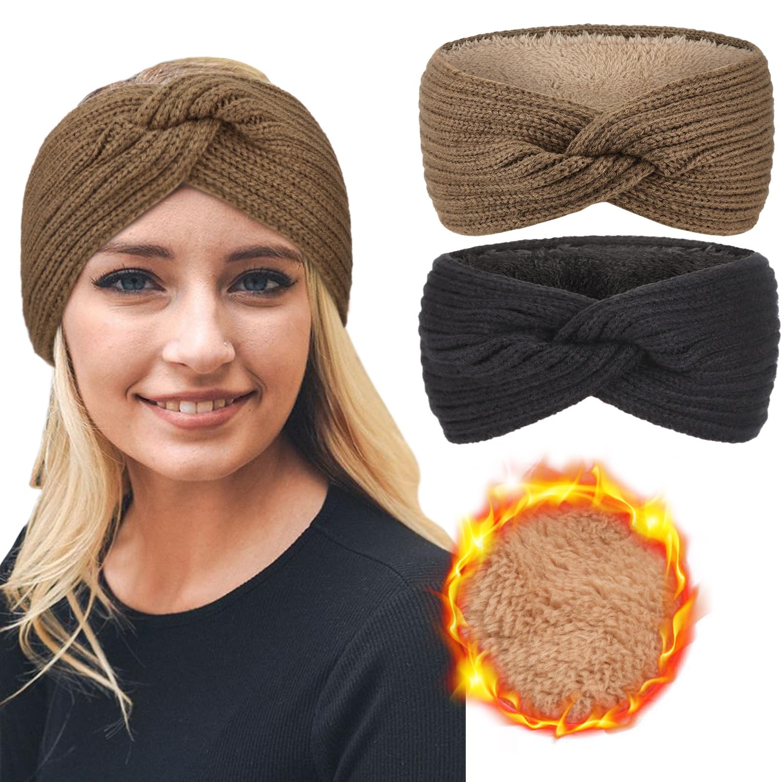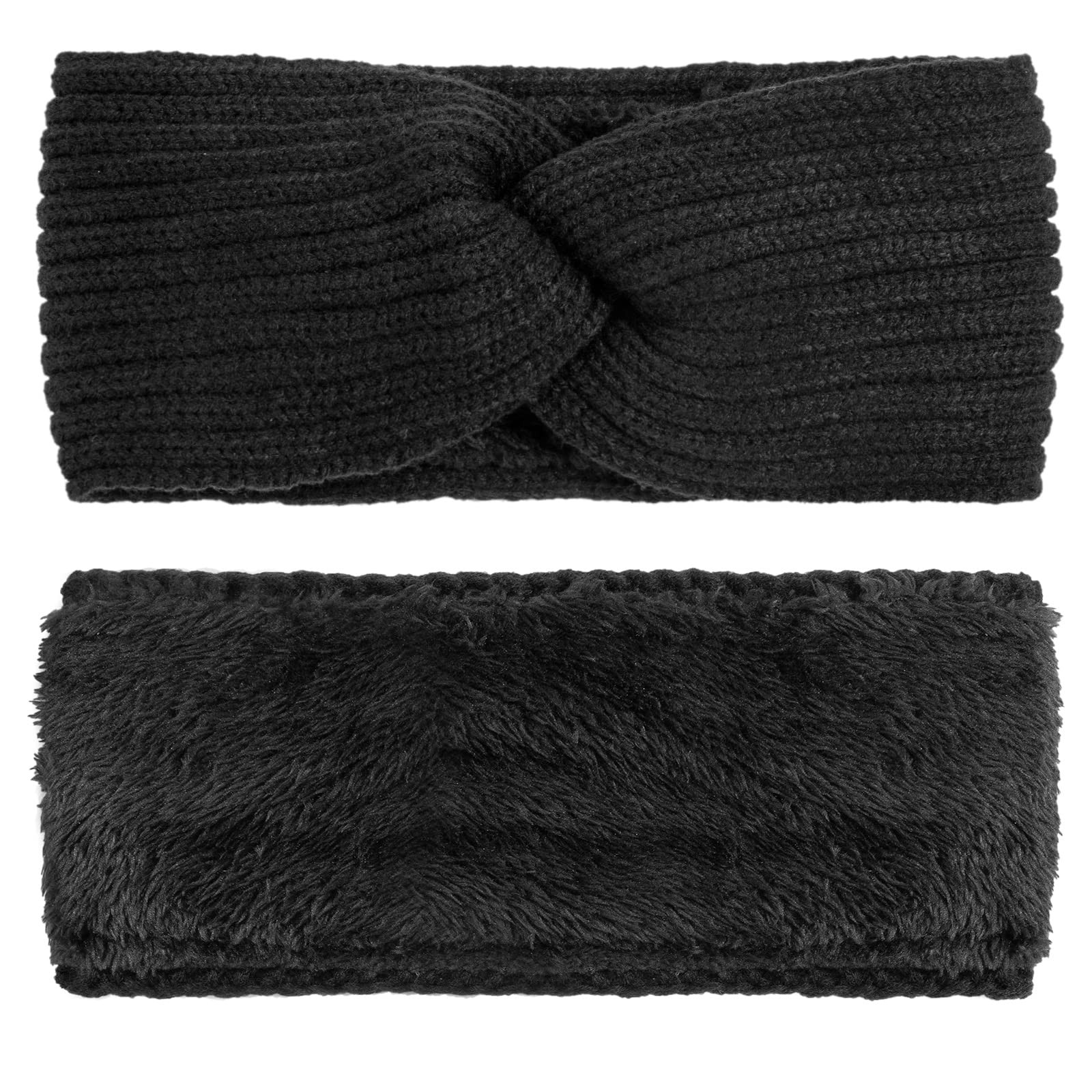 Knit Winter Headbands for Women Fuzzy Wool Fleece Lined Ear Warmers Elastic T...