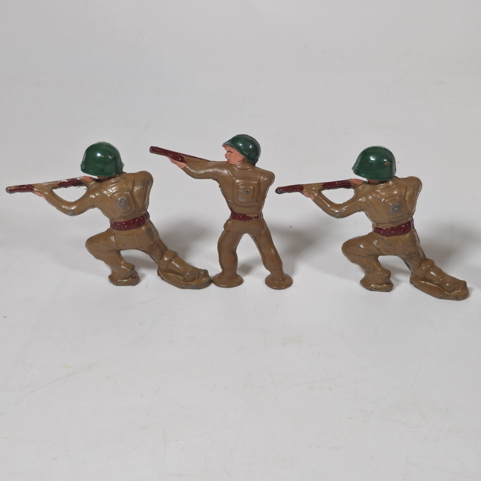 как выглядит Lot Of 5 Vintage Barclay Manoil Pod Foot Soldiers Cast Metal Toy фото