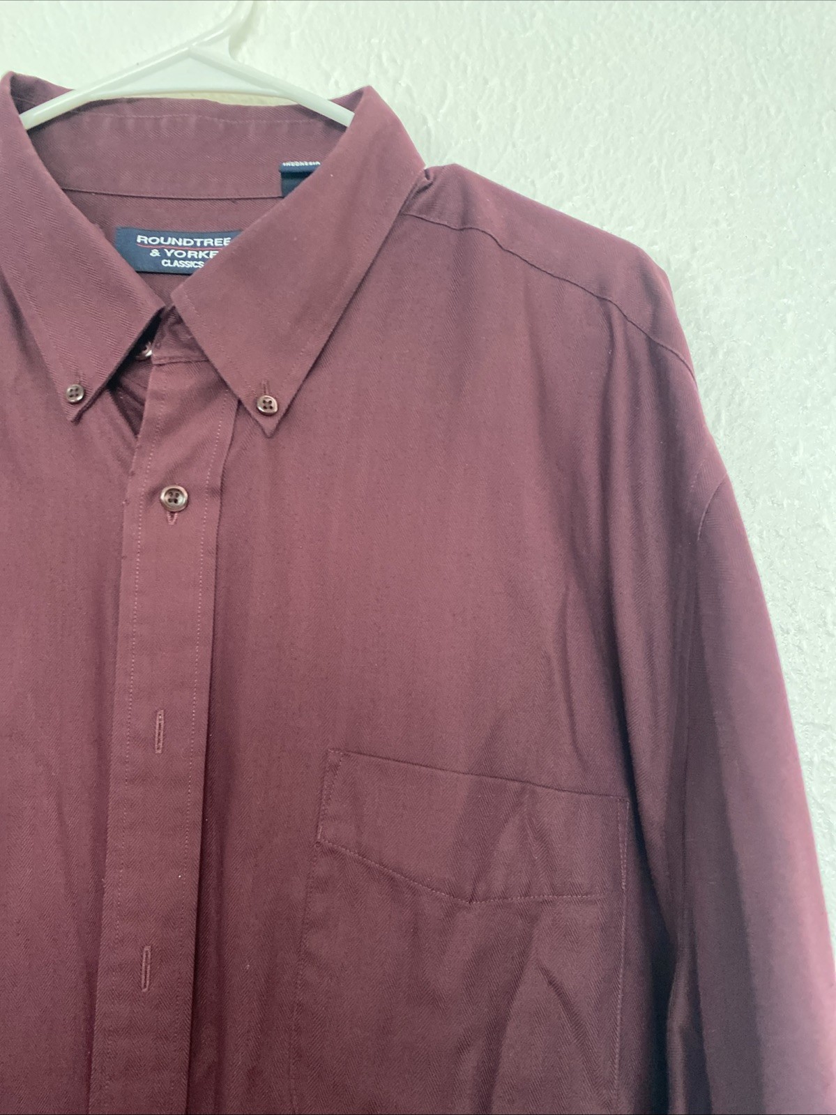 как выглядит Men s Roundtree Yorke Classics Button Down Shirt Sz XXL Pocket Burgundy фото