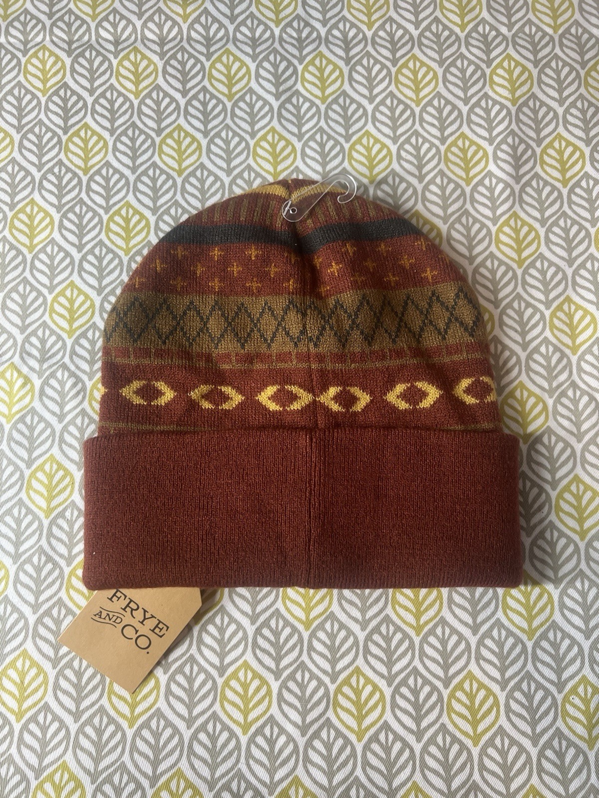 Frye and Co. Women's Geometric Knit Beanie Rust Brown Yellow Olive Hat