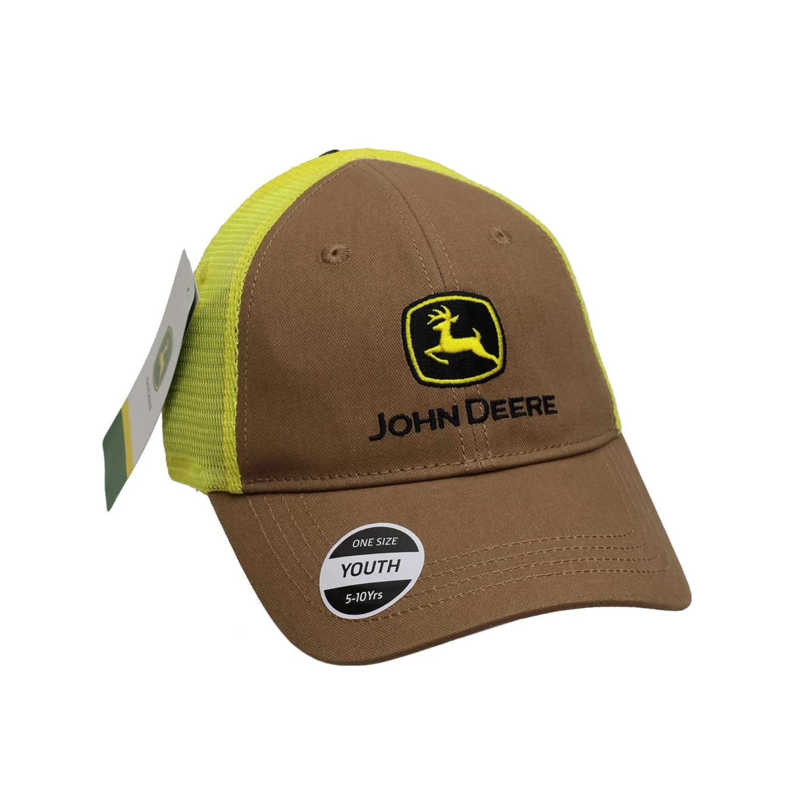 John Deere Youth Trucker Hat Brown Yellow Construction Snapback Adjustable Cap N