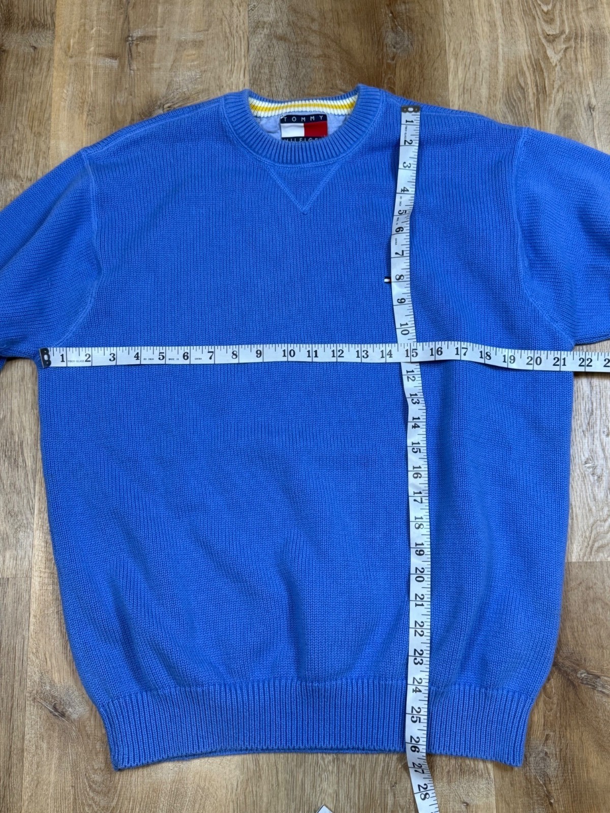 как выглядит Vintage Tommy Hilfiger Blue Knit Cotton Crewneck Sweater Mens Large фото
