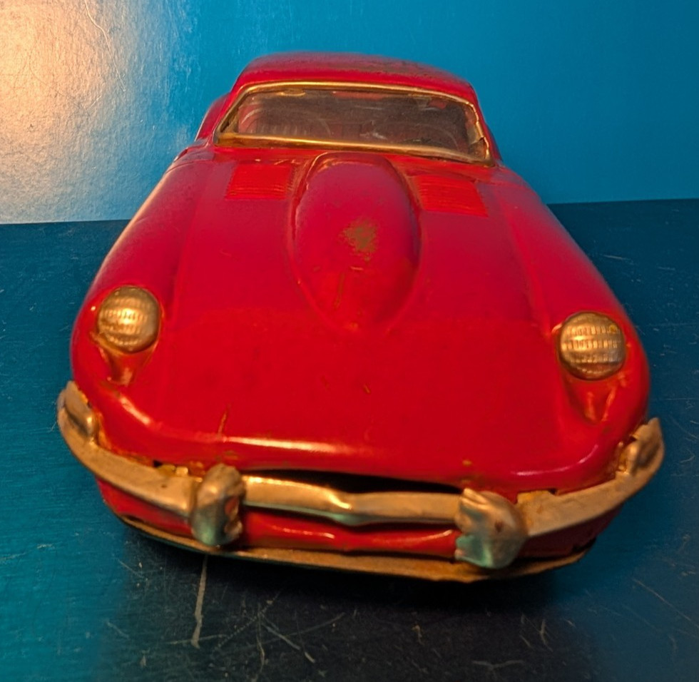 как выглядит Vintage 1960 s XK-E XKE Jaguar Bandai Japan Tin Friction Toy Car 8 фото