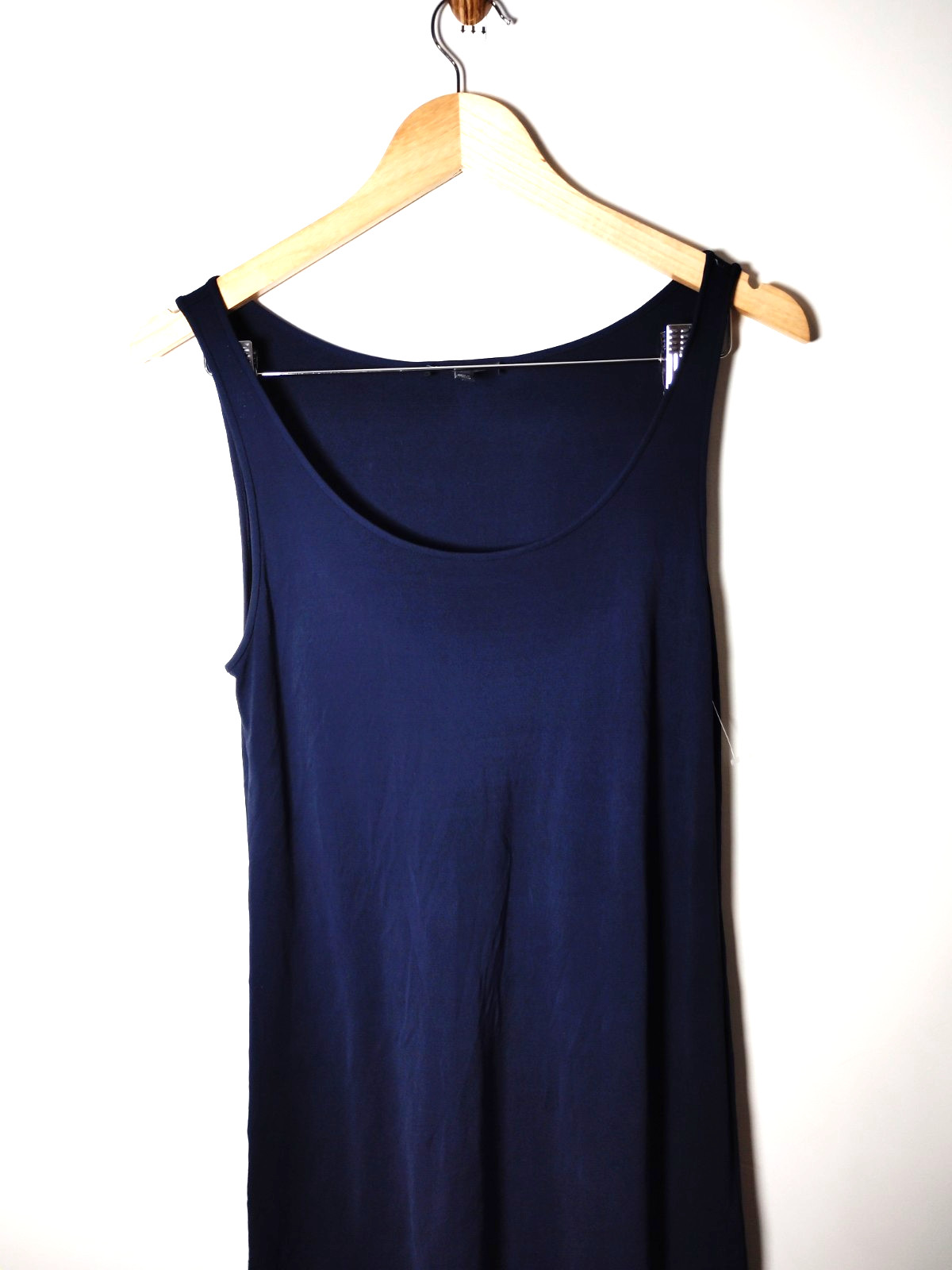 как выглядит NWOT EILEEN FISHER NAVY Silk Crepe de Chine Sleeveless Long Lagun Tank Top S/P фото