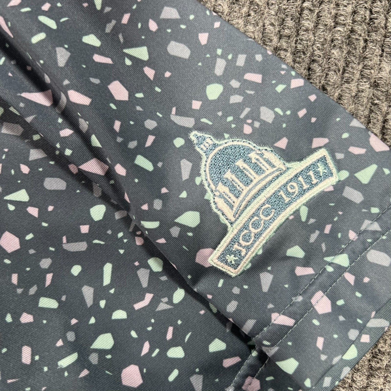 как выглядит FootJoy Polo Shirt Mens Large Gray Geometric Short Sleeve Golf Performance фото