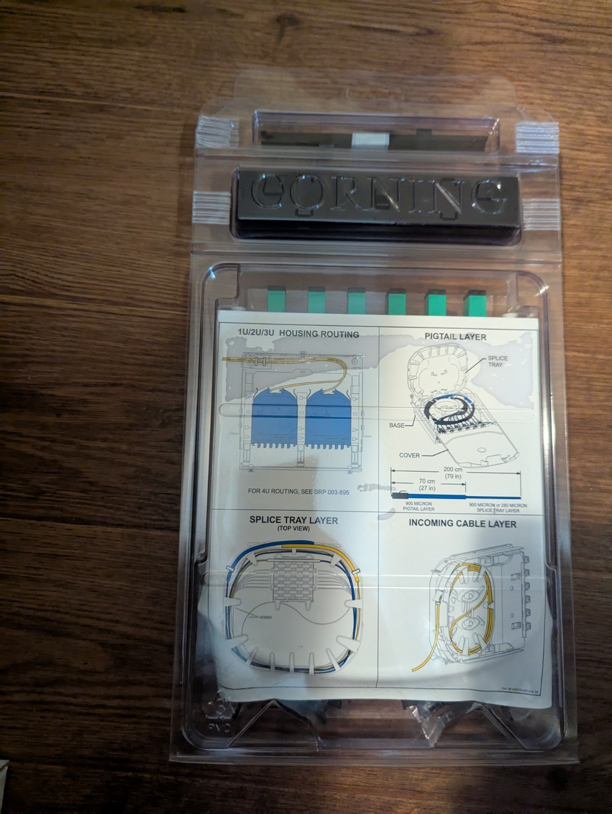 как выглядит Corning CCH-CS06-6C-P00RE CCH Pigtailed Splice Cassette SC Simplex OS2 APC фото