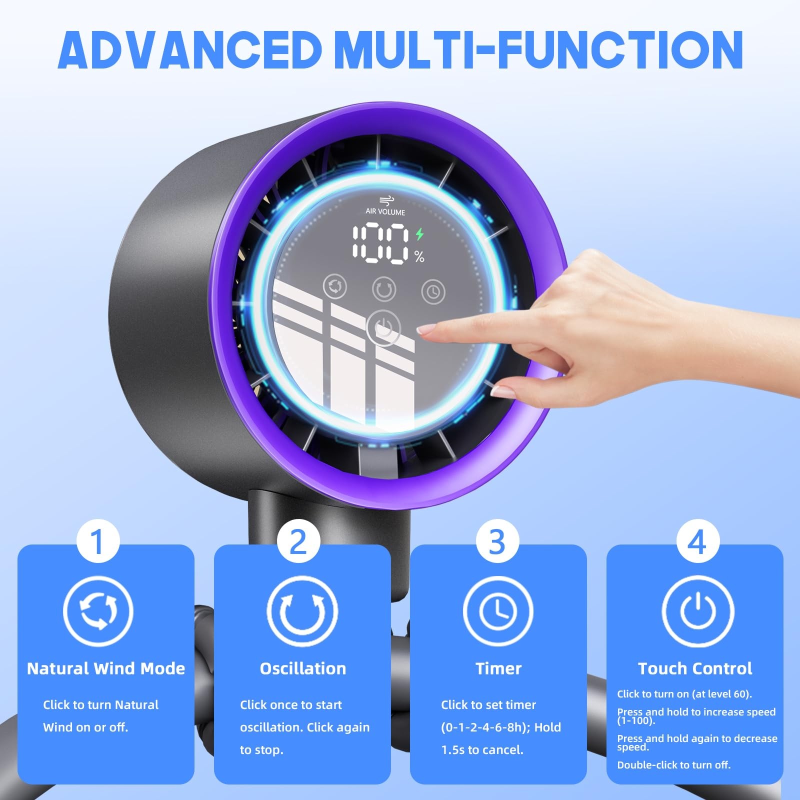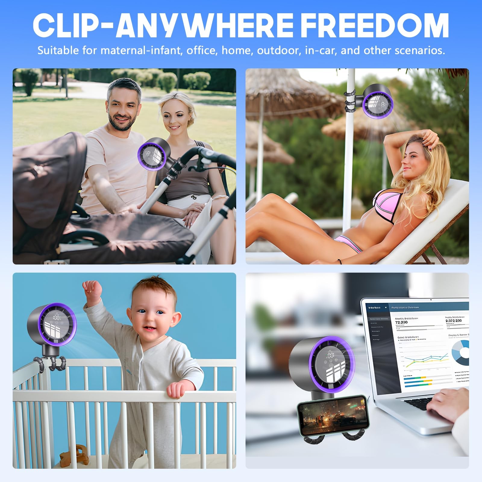 Stroller Fan with Auto Oscillation 100 Speed Settings, 15m Airflow, 16 C Co...