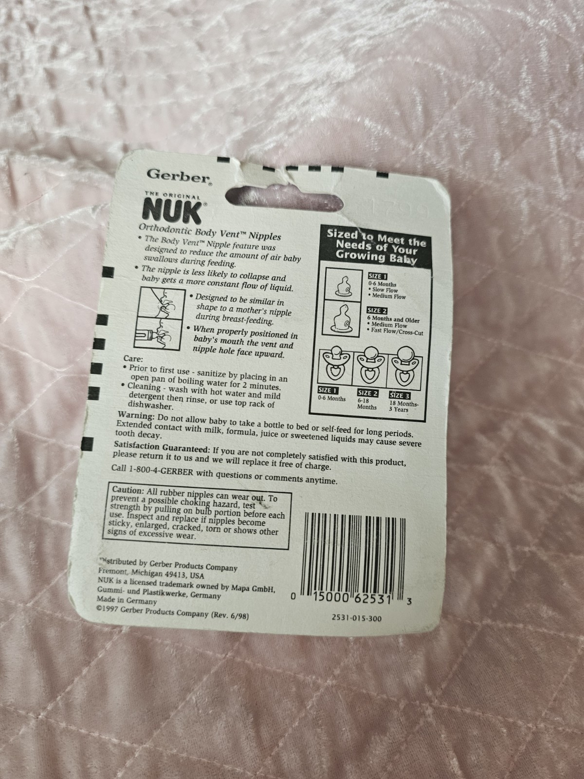 как выглядит Vintage 1997 Gerber NUK Size 2 Latex Orthodontic Nipples Medium Flow Baby 02556 фото