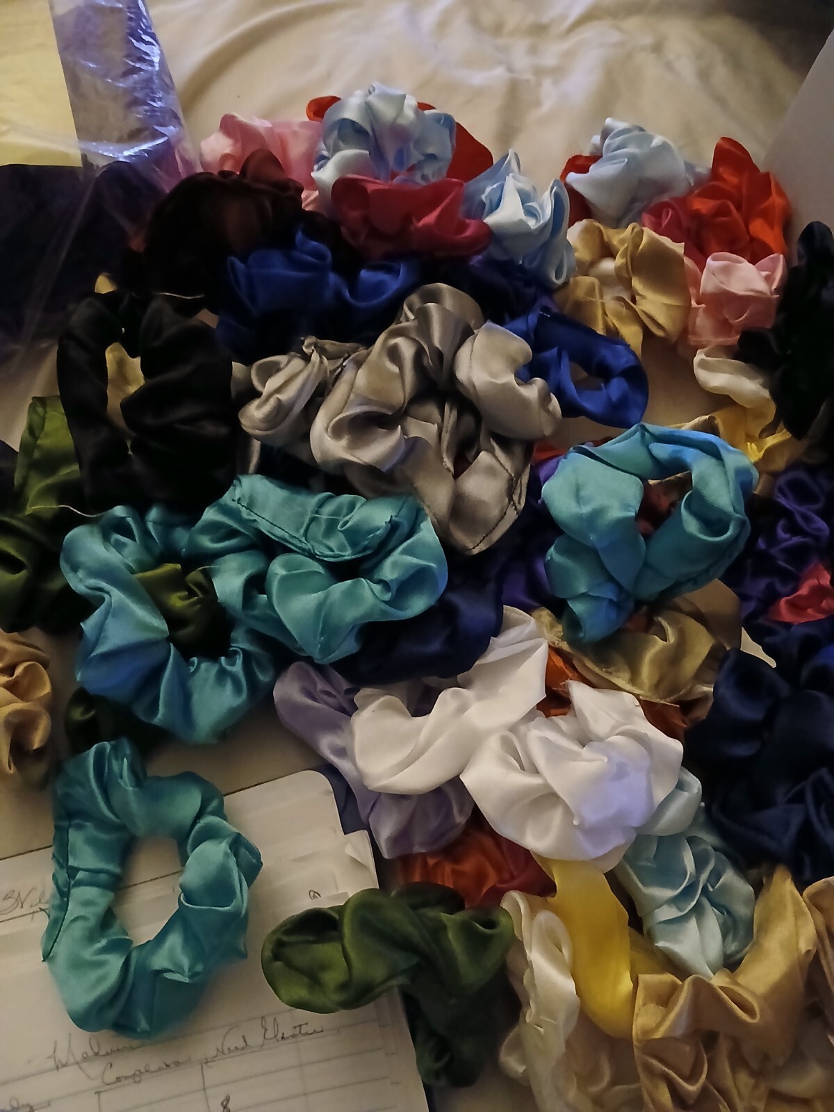 Set of 22 Satin Scrunchies in 22 Colors in 3 Sizes Assorted