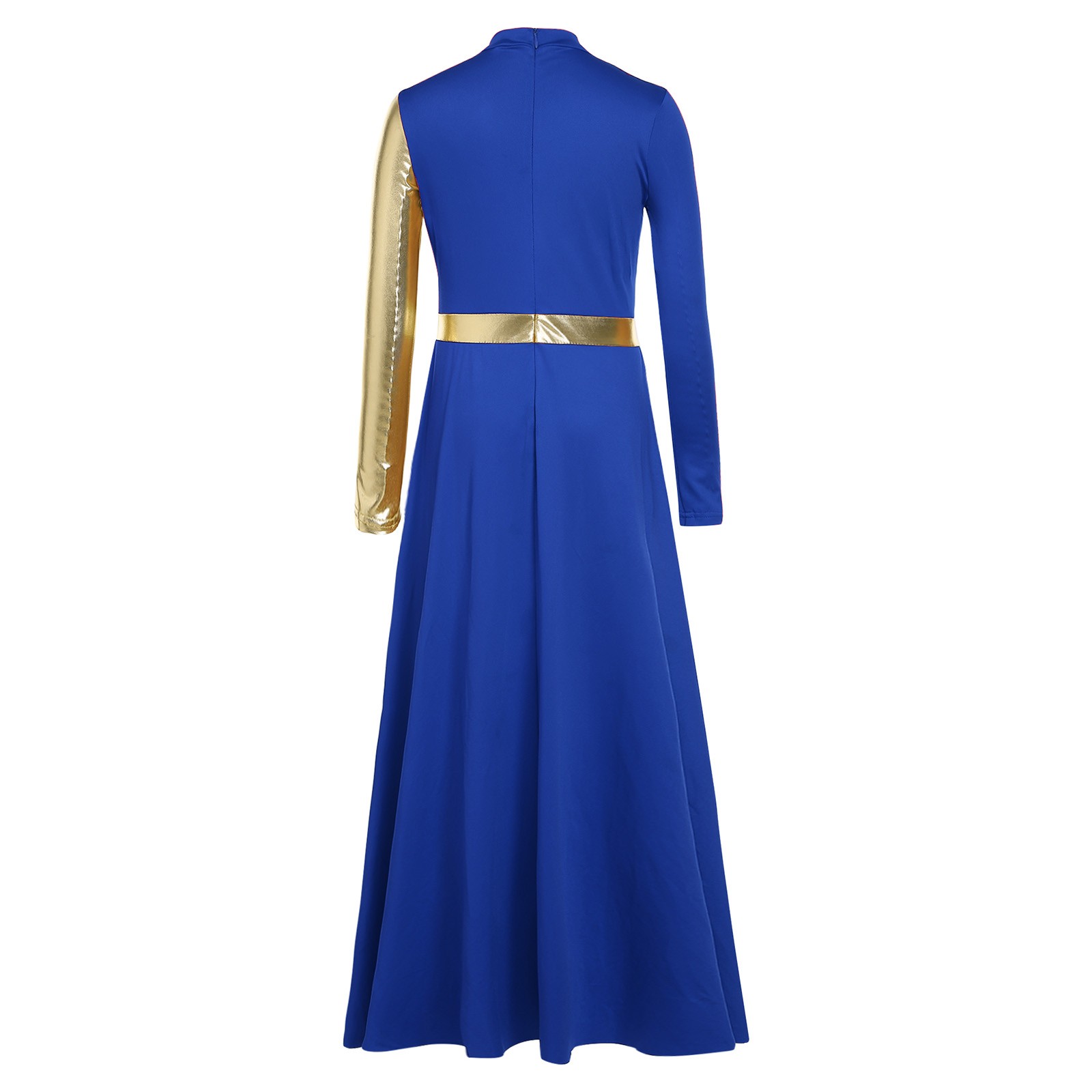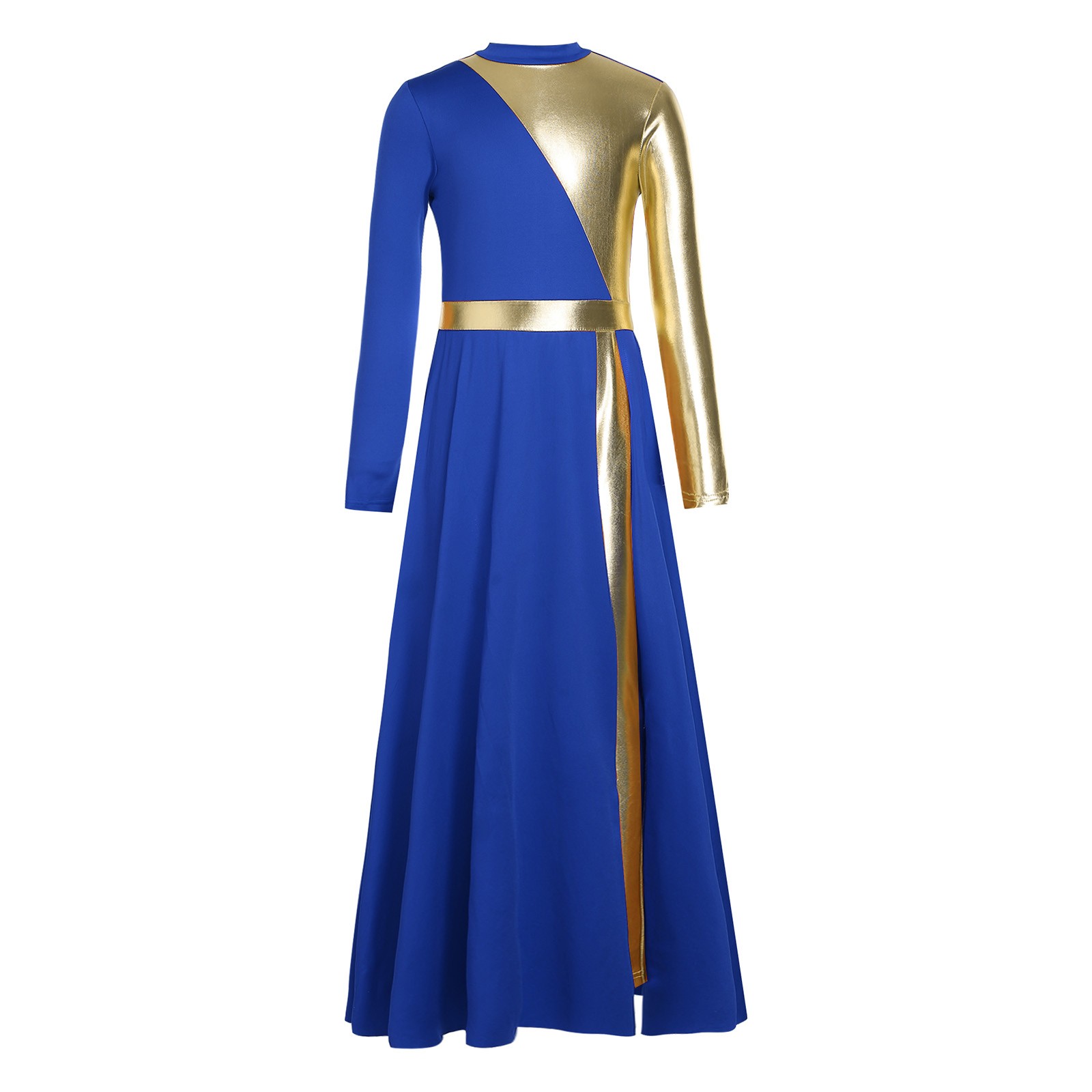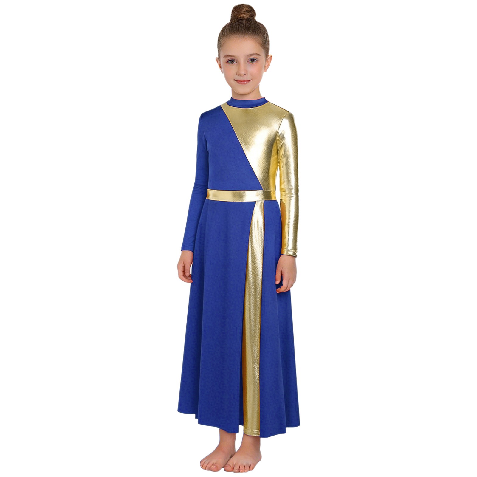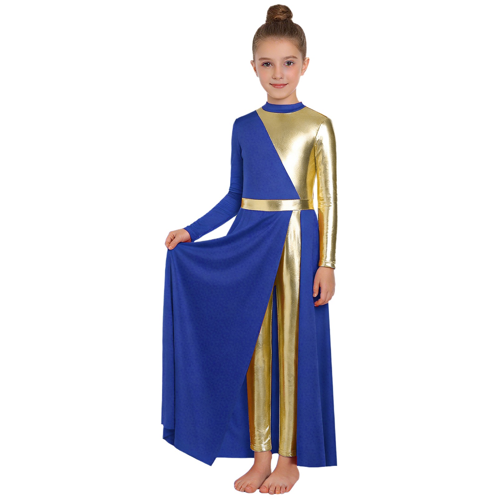 Kids Girls Church Lyrical Dance Dress Stage Dancewear Long Sleeve Leotard Gold