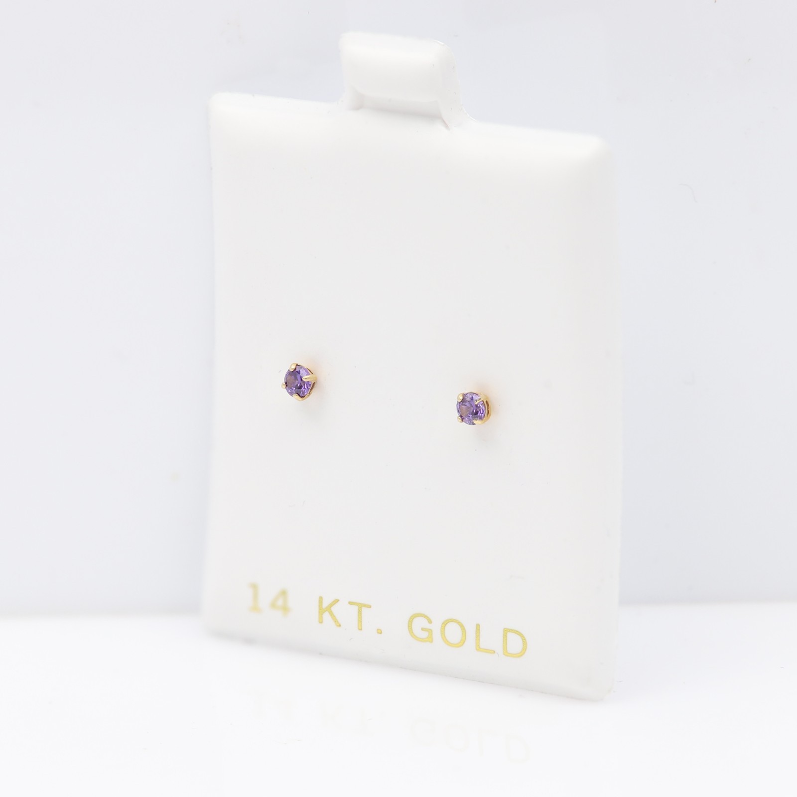 как выглядит Baby Earrings Purple Cz Solid 14k Gold Screw Protective Backs 2mm фото