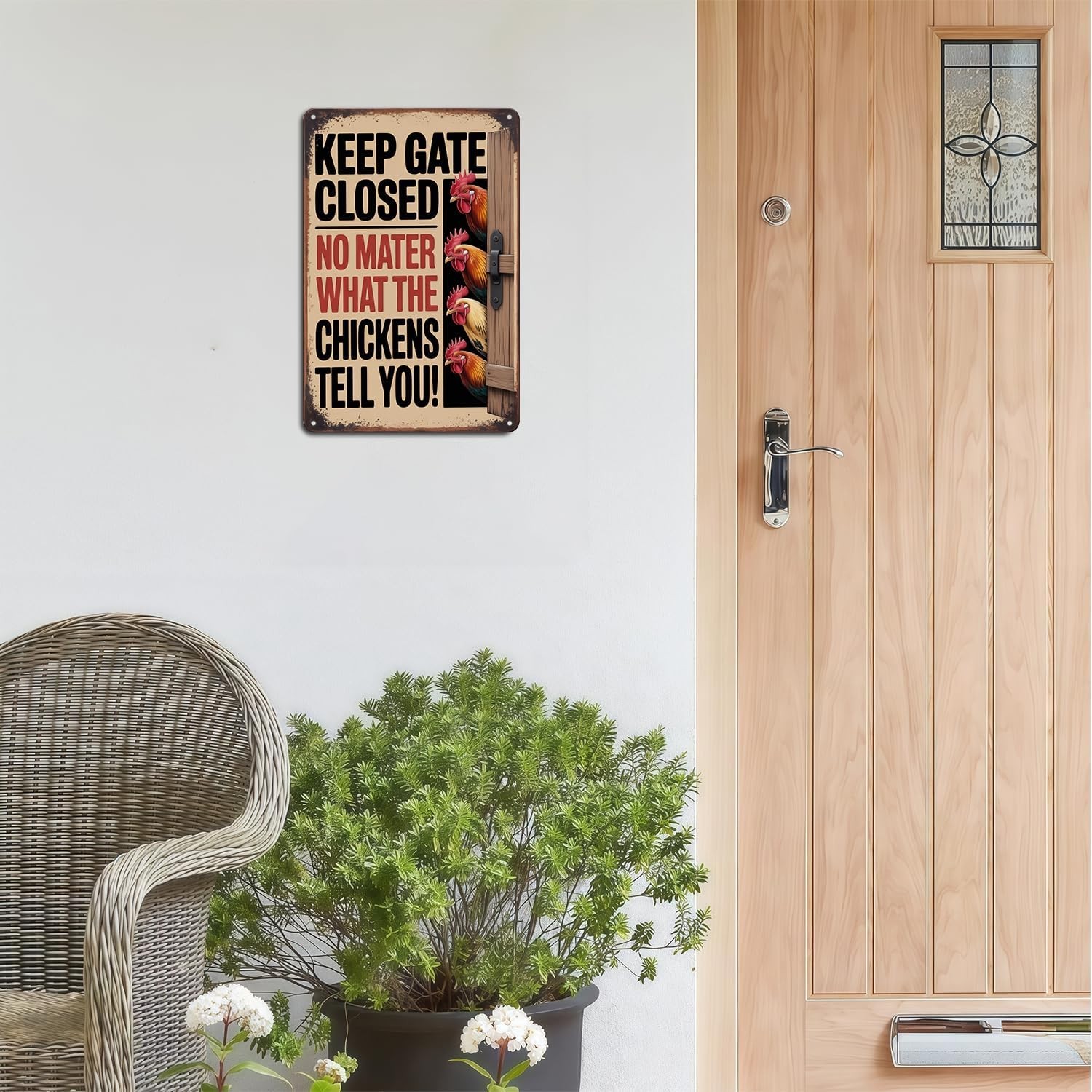 • Funny Chicken Keep Gate Closed Tin Metal Signs Home D cor Vintage Farmhouse Chic