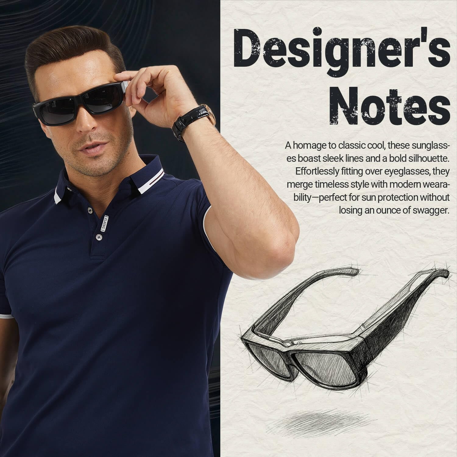 Polarized Fit Over Glasses Sunglasses For Men, Rectangle Wrap Around Sun Glas...