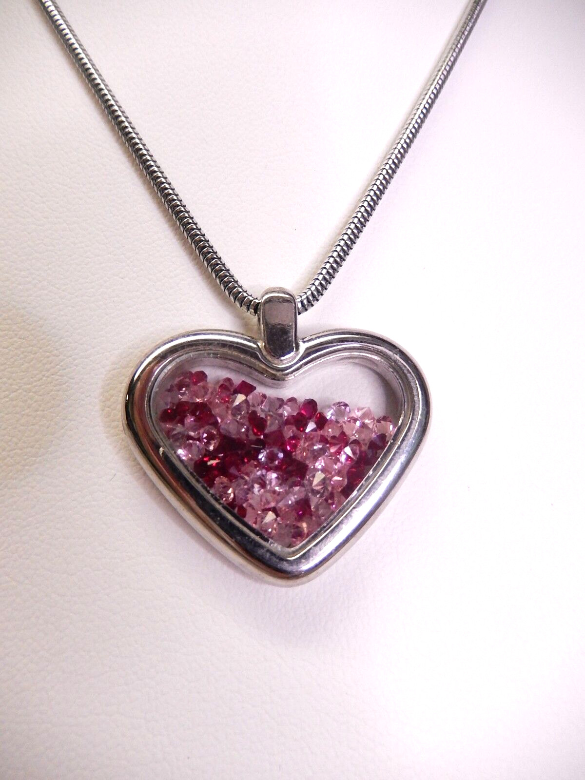 как выглядит Signed Swarovski Necklace Heart Floating Crystals Pink Fuchsia Rhodium N316 фото
