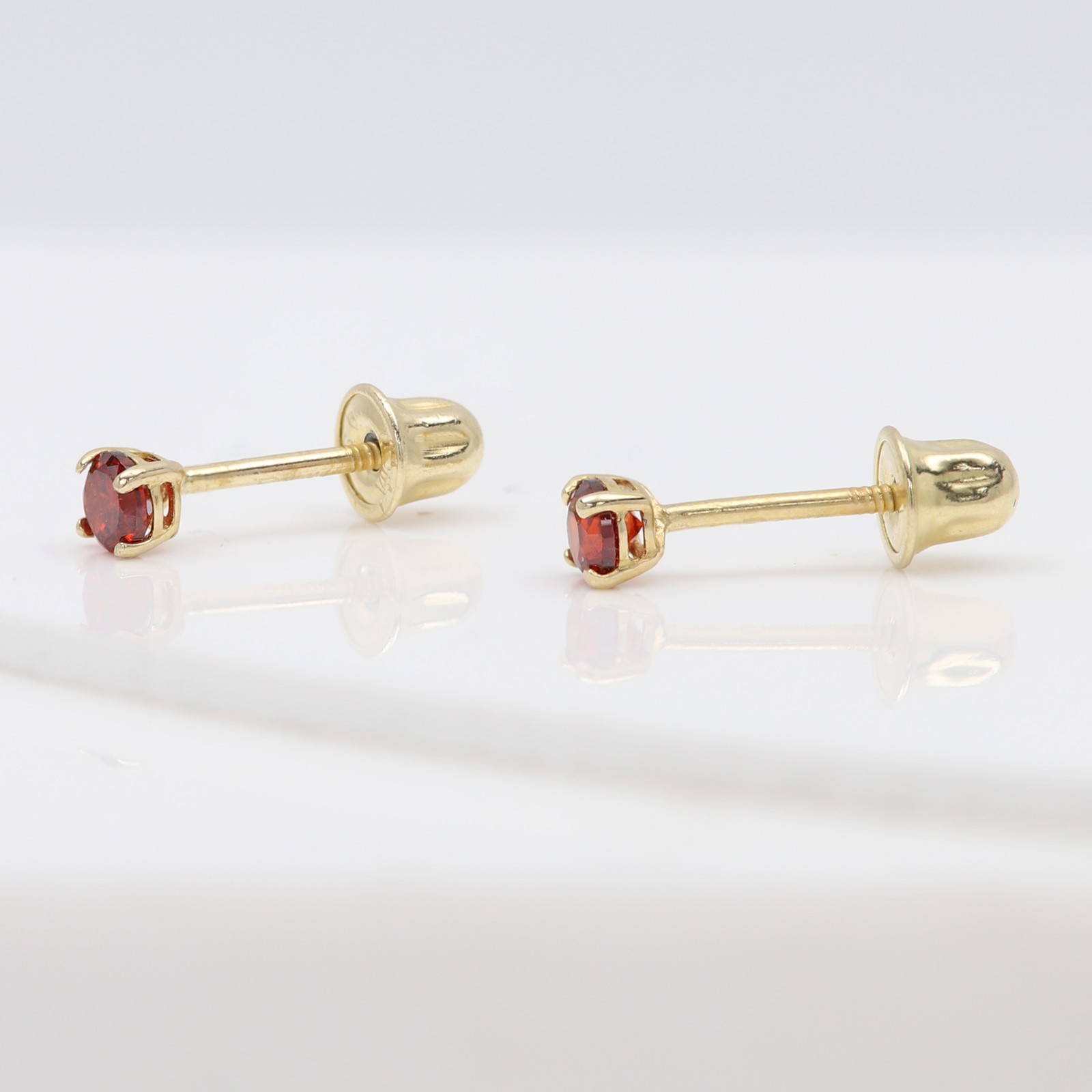 Baby Earrings Red Cz Solid 14k Gold Screw Protective Backs 2mm