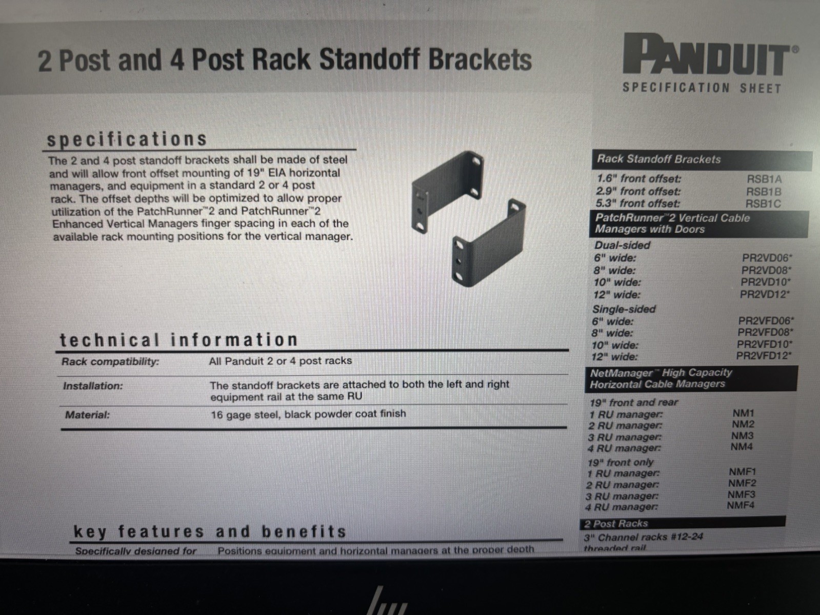 как выглядит Panduit RSB1A Rack Standoff Bracket Kit powder coat Steel 1 RU 1.6 " Depth Black фото