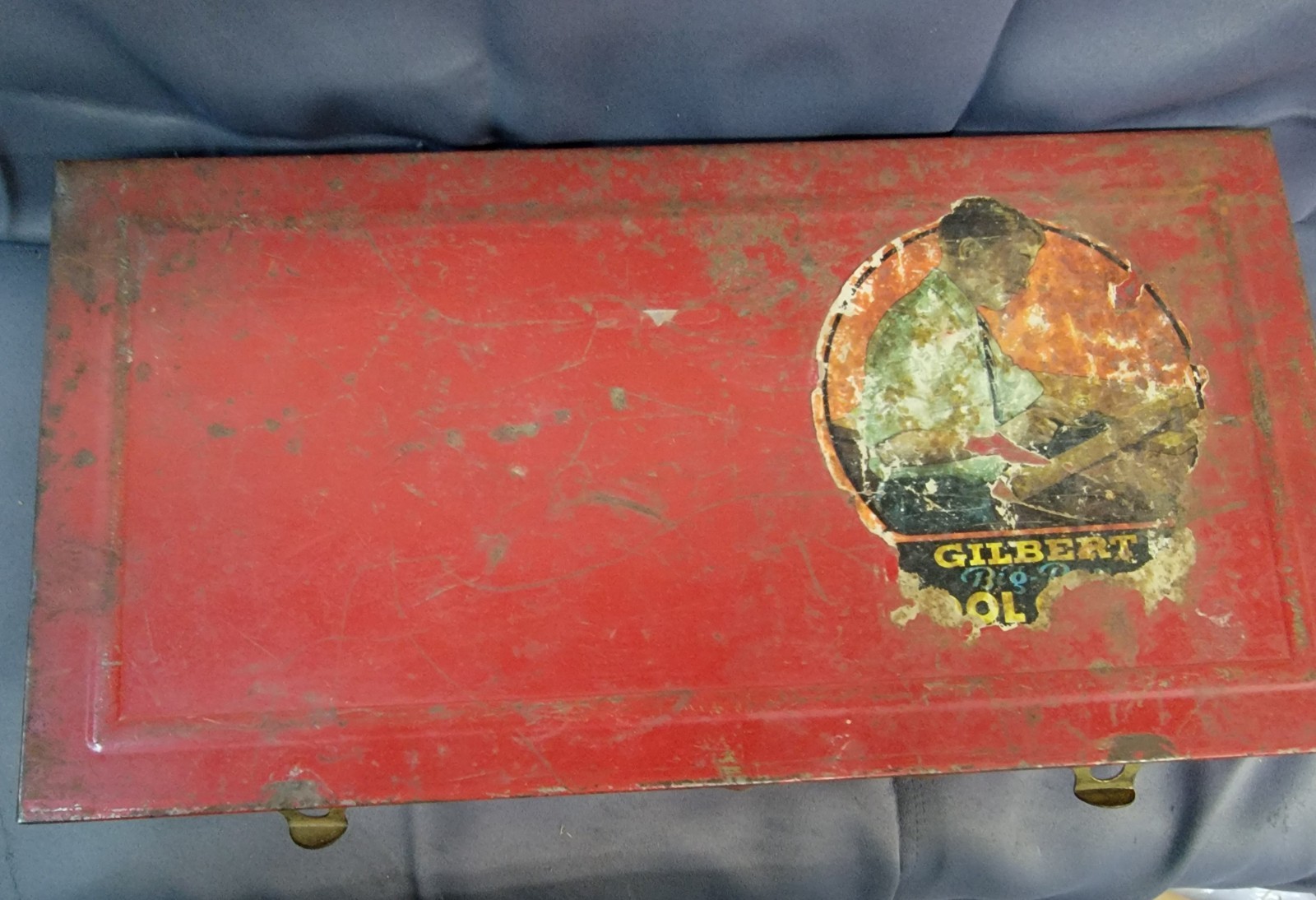 как выглядит Vintage Big Boy Gilbert Metal Box Tool Chest With Some Parts фото
