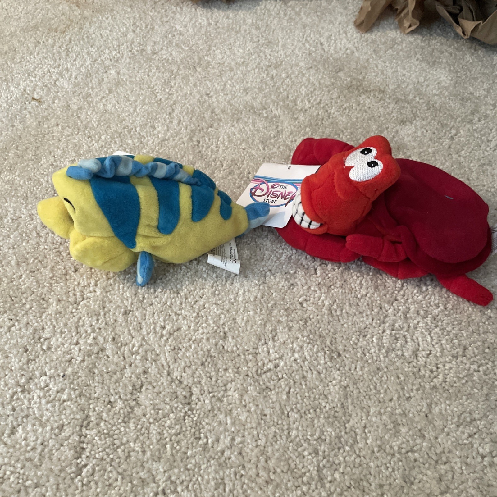 Vintage Disney Store Little Mermaid Flounder Sebastian Mini Bean Bag Plush