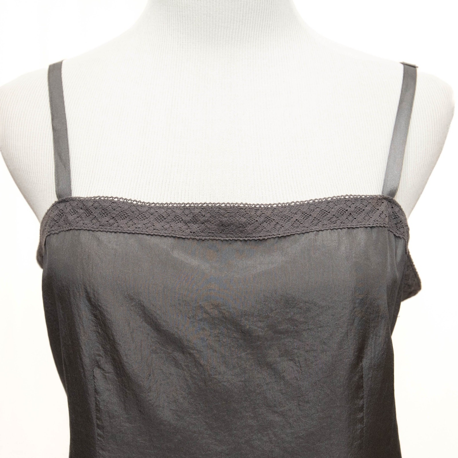 как выглядит Eileen Fisher Gray Silk Lace Trim Cami Size Medium фото