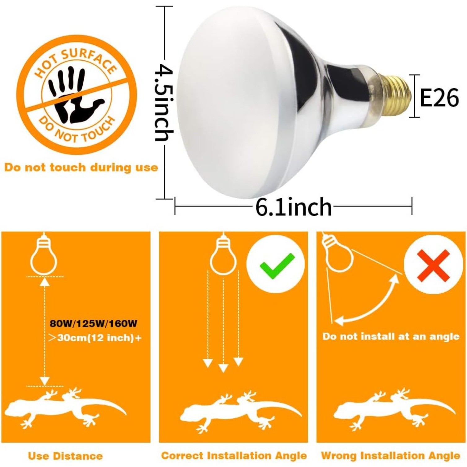 125 Watt UVA UVB Vapor Heat Lamp Bulb,Self-Ballasted Heat Basking Lamp