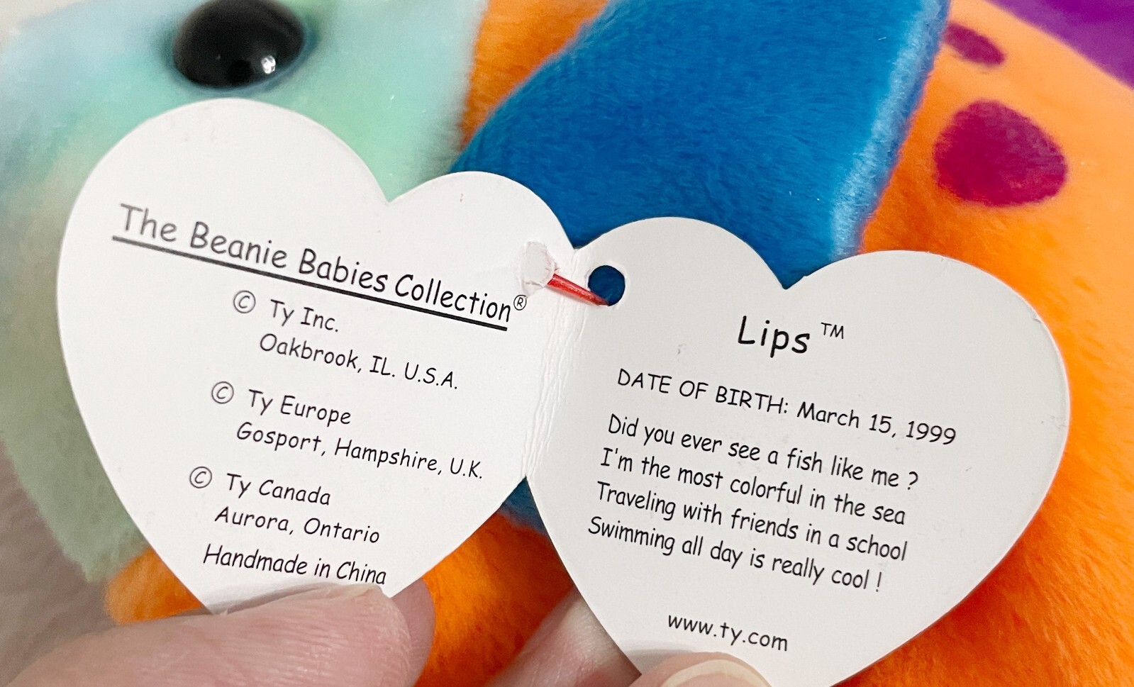 как выглядит Ty Beanie Babies Retired Lips the Multicolor Fish Beanie Plush, 1999 фото