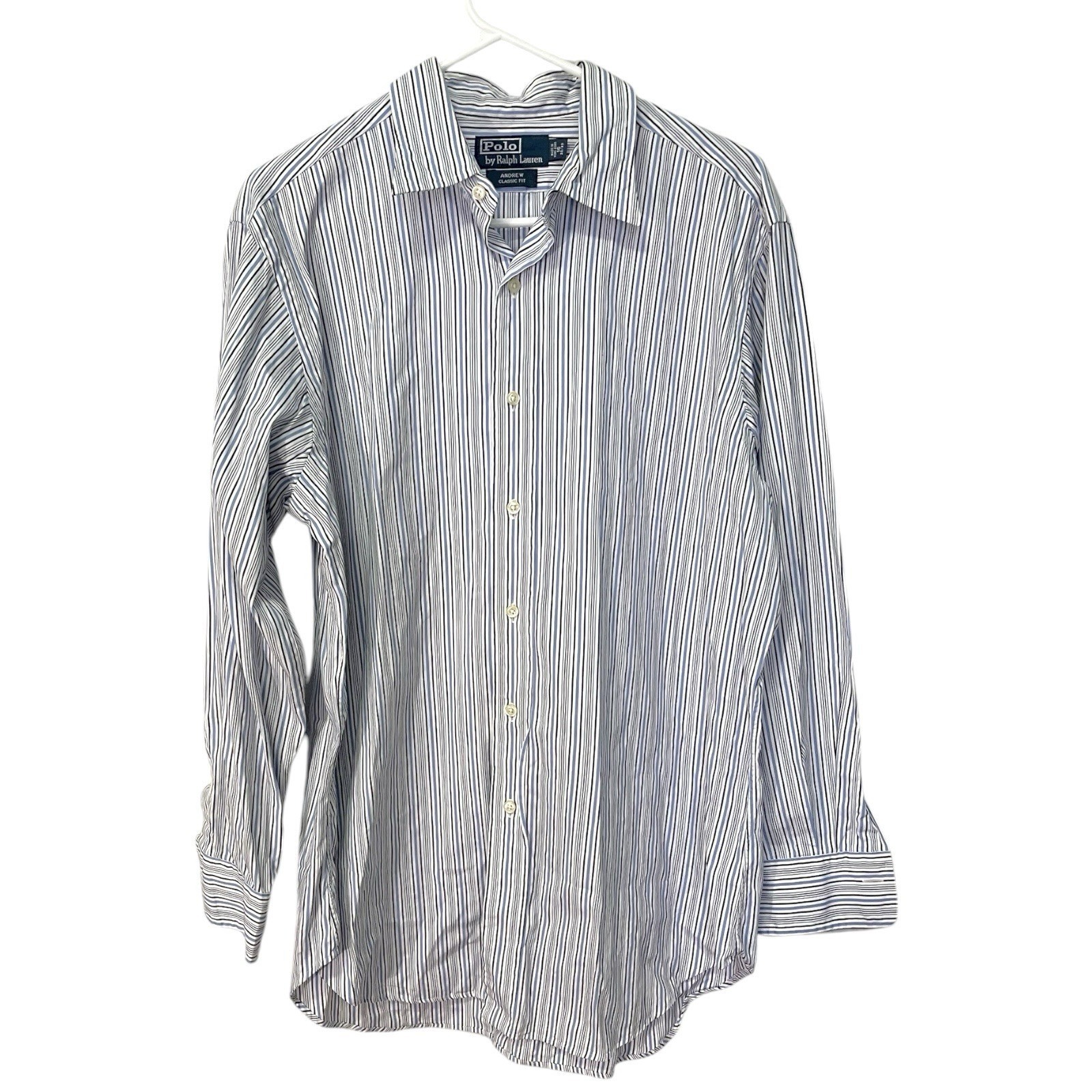 Polo Ralph Lauren Andrew Dress Shirt Mens 16 32/33 Blue Striped Cotton Classic