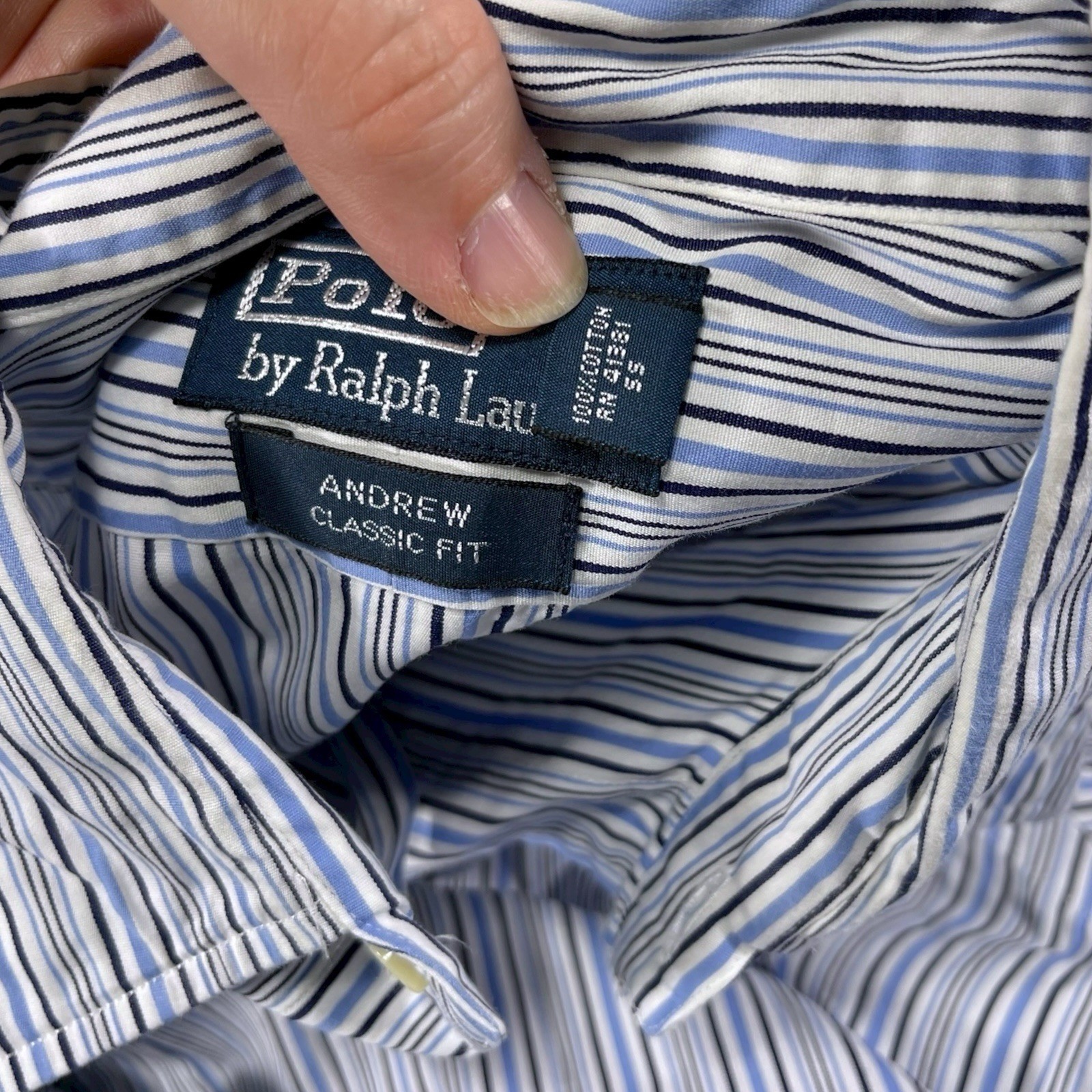 как выглядит Polo Ralph Lauren Andrew Dress Shirt Mens 16 32/33 Blue Striped Cotton Classic фото