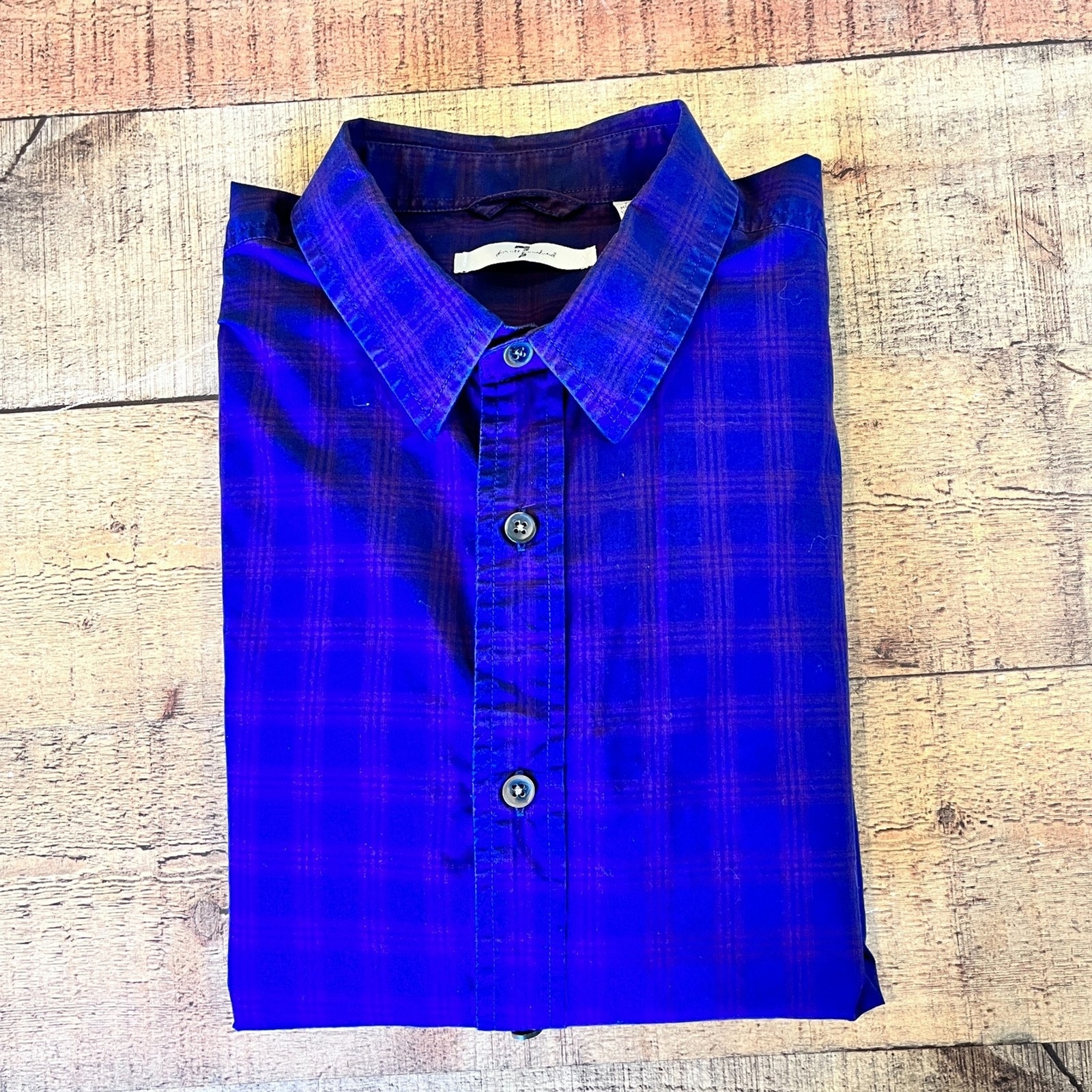как выглядит 7 For All Mankind Blue Plaid Dress Shirt Medium Office Work Career фото