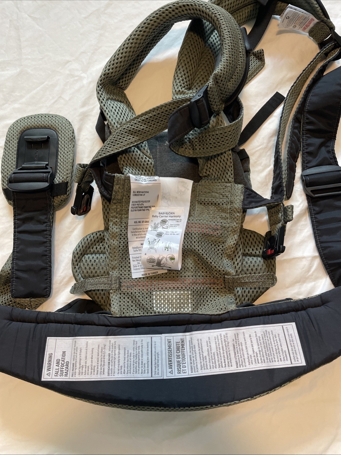 BabyBj rn Harmony Baby Carrier Olive Green Mesh Ergonomic