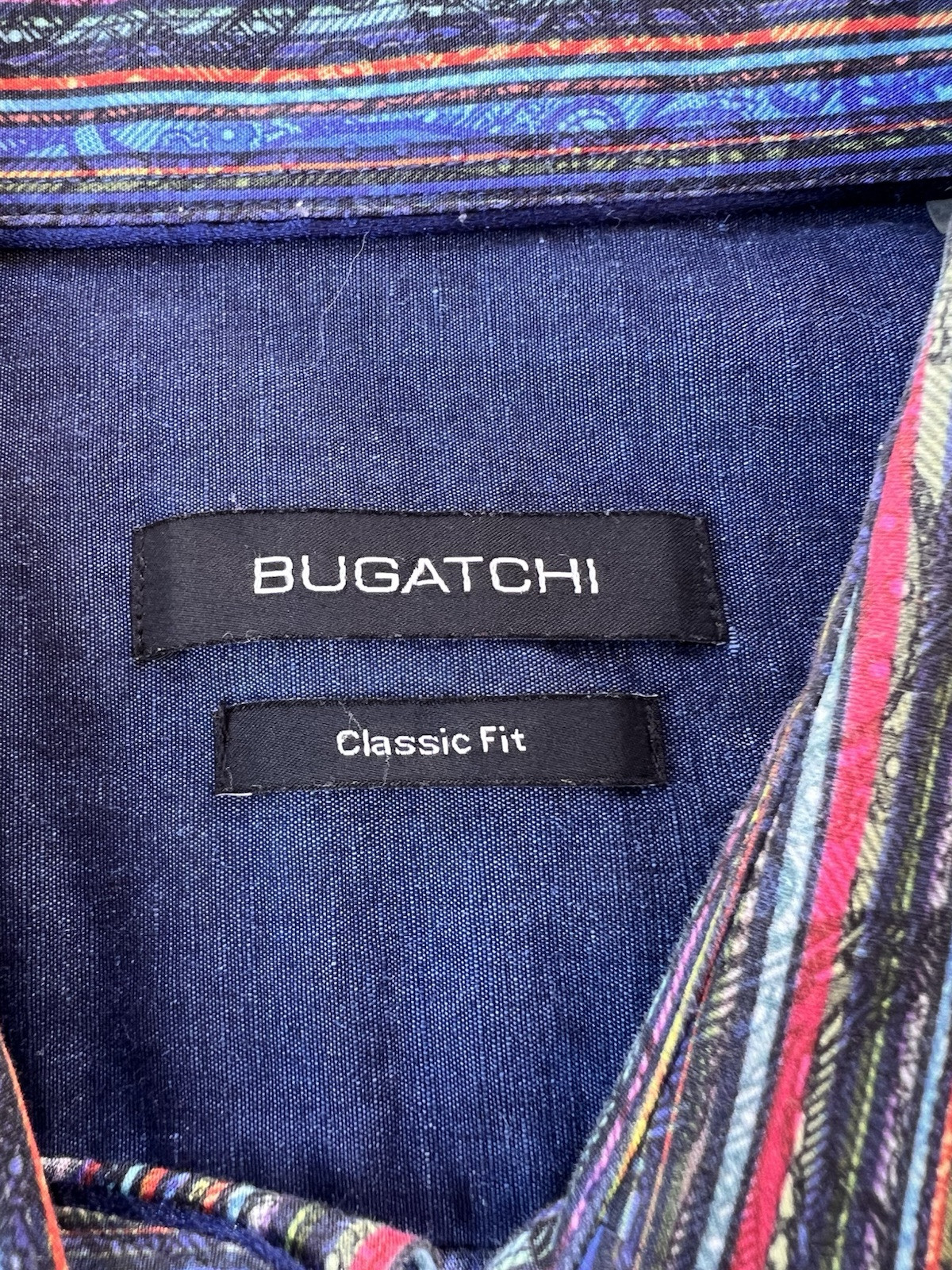 BUGATCHI Shirt Medium Long Sleeve All Over Print Paisley Button Down Striped