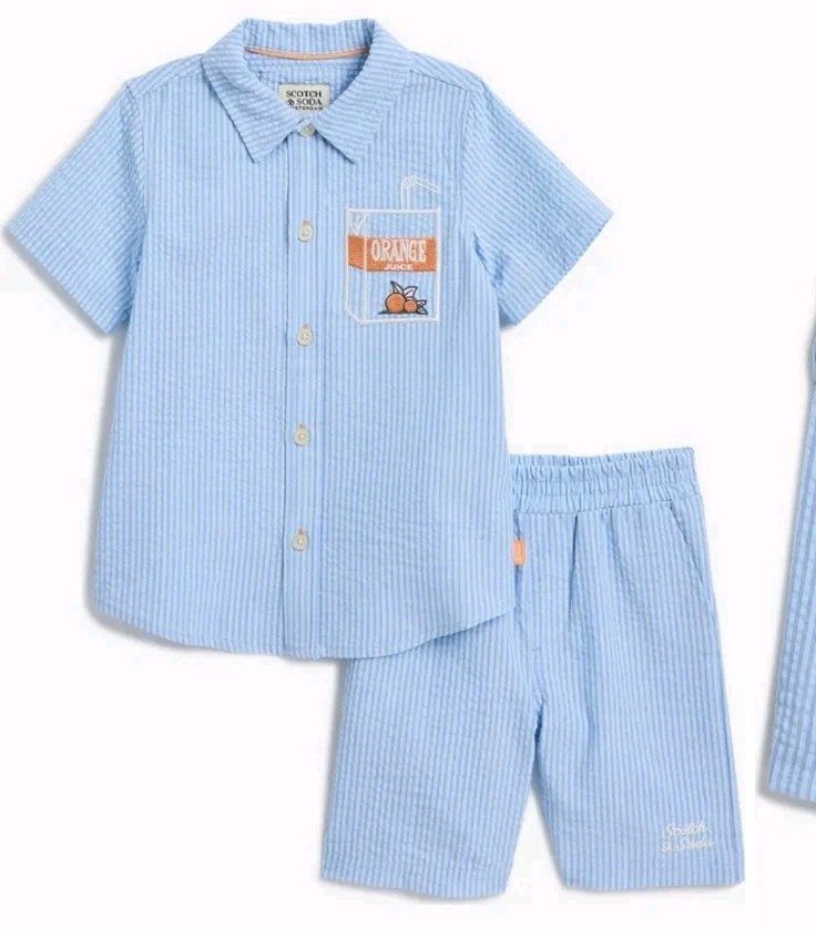 NEW Scotch Soda Blue Striped Seersucker Button Up Shirt Shorts Set Size 8