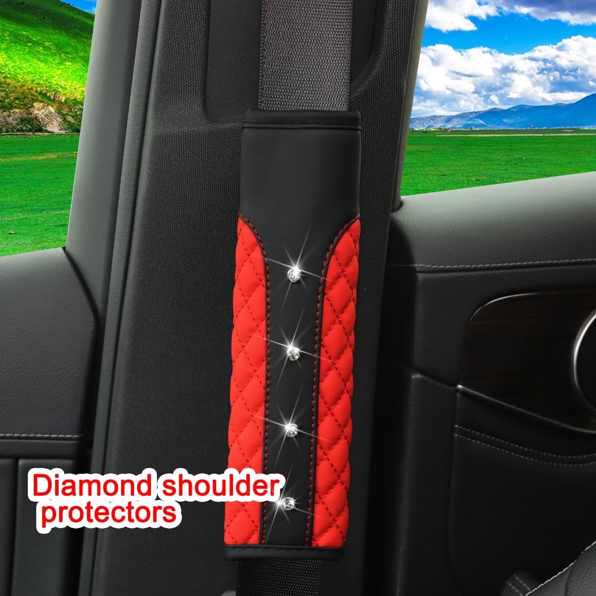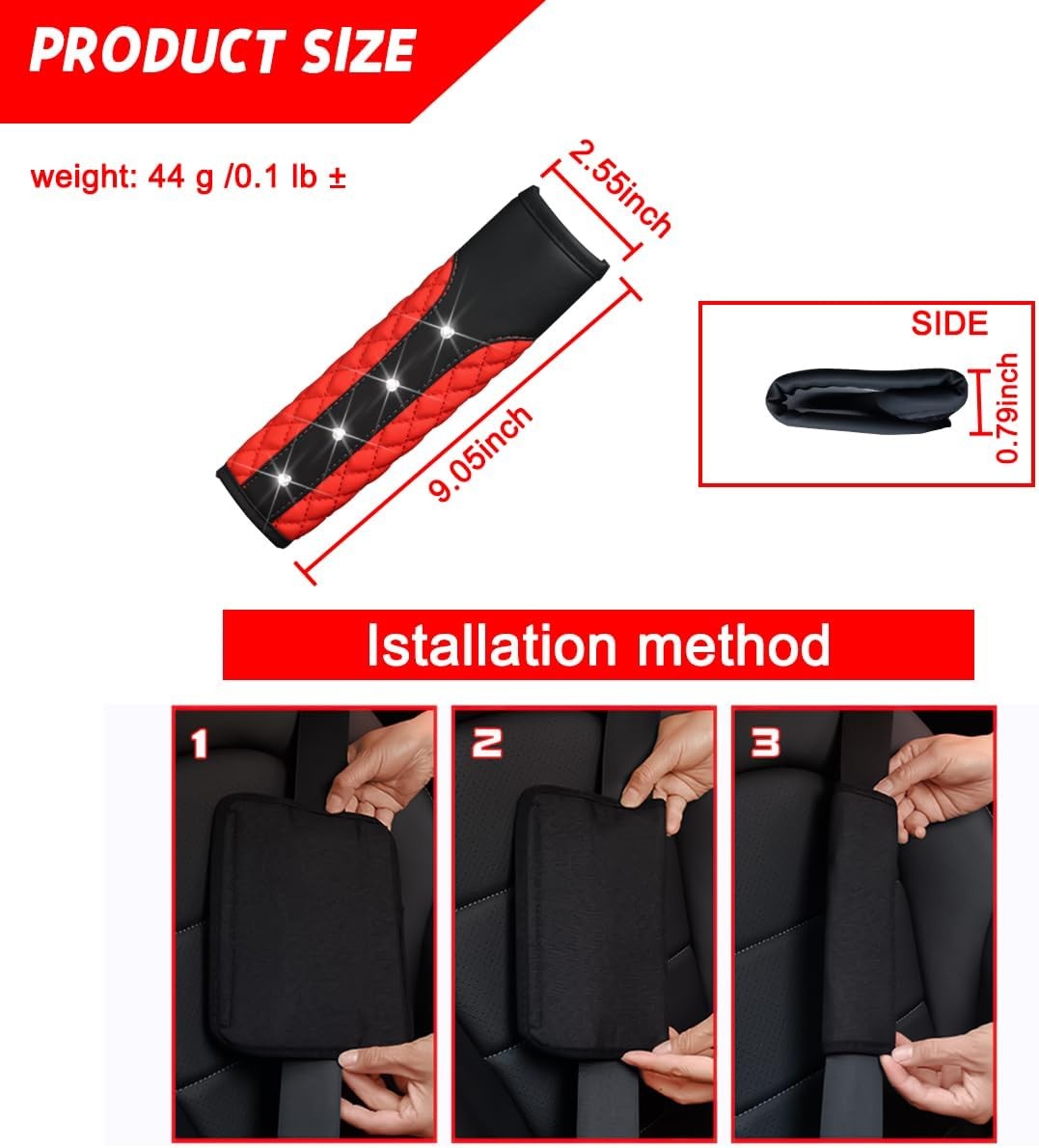 2PCS Bling Car Seat Belt Covers, Leather Vehicle Shoulder Pad Cushions-Red