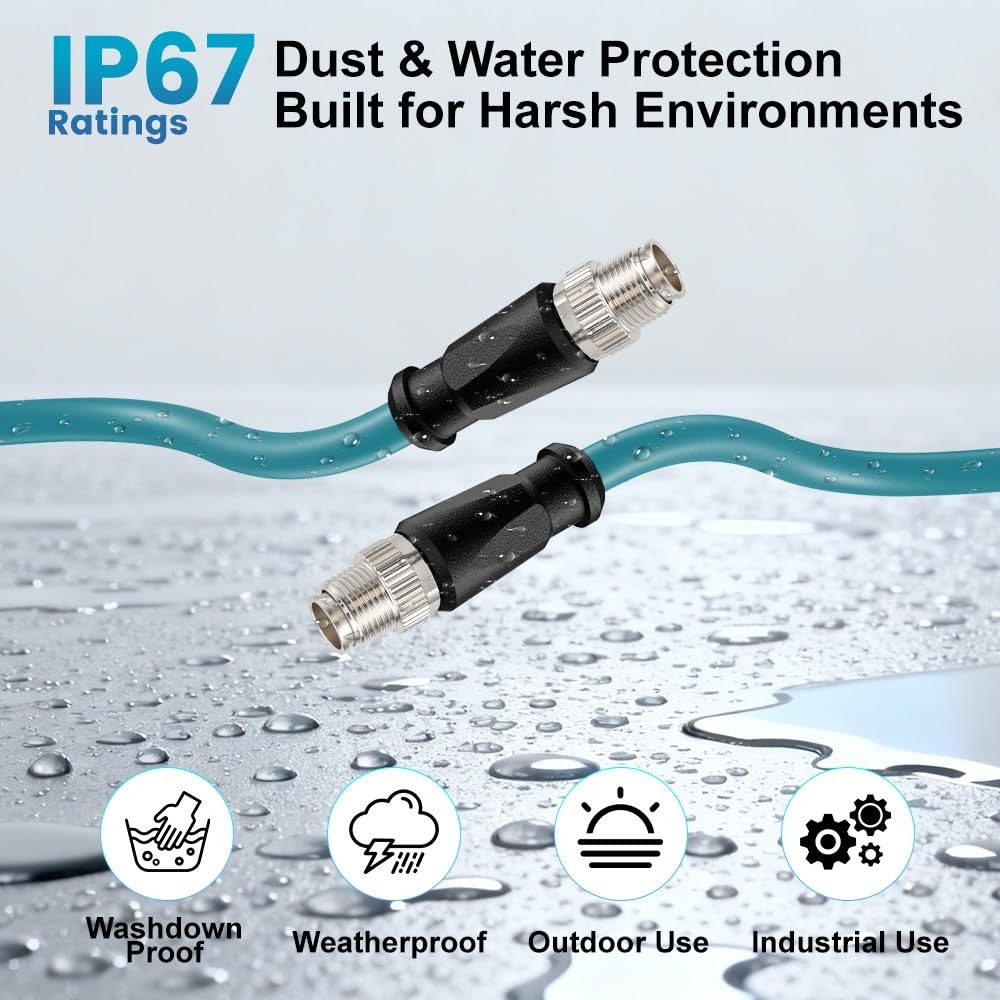 M12 X-Code 8 Pin to 8 Pin Ethernet Cable for Cognex Basler Industrial Camera 1m
